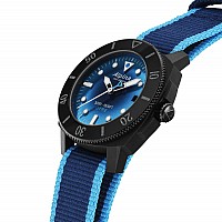 Hodinky Alpina Seastrong Diver Gyre jsou dodávány v dárkové krabičce oceánově modré barvy vyrobené z recyklovaného plastu, recyklovaného papíru a tkaniny rPET.