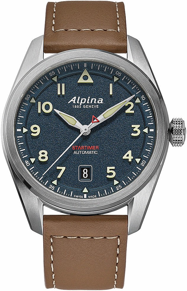 Letecké hodinky nemusí být nutně jen černé. Alpina to dokazuje tímto úžasným modelem Startimer Pilot Automatic s temně petrolejovým číselníkem, jehož zrnitý povrch mu dodává neobyčejnou hloubku a šmrnc. Tento kousek přináší perfektně vyvážený průměr 40 mm, ale díky o 10 % tenčímu pouzdru z broušené oceli s leštěnými hranami sedí na zápěstí ještě lépe než kdy dřív. Skvělou orientaci v čase zaručují inovované 3D indexy a číslice, které i ve tmě září jasnou luminiscencí.