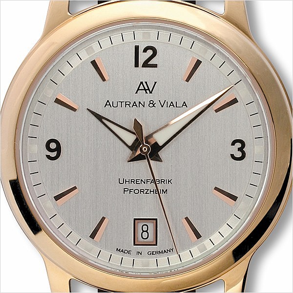 Dámské společenské hodinky se zlatou PVD úpravou. Elegantní stříbrný ciferník zdobí plastické indexy, ručky mají luminiscenční výplň. Kožený řemínek.