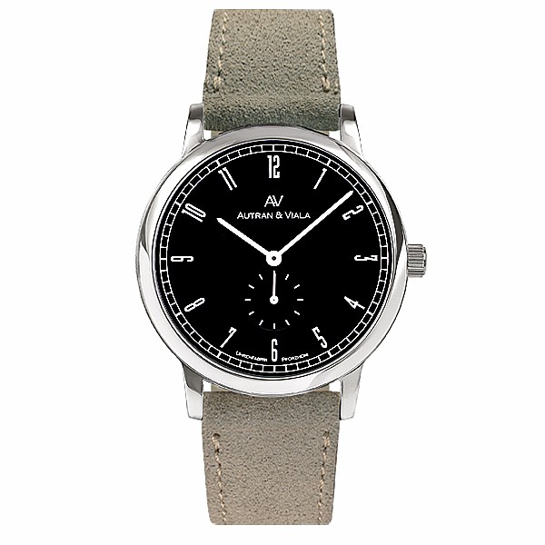 Minimalistické společenské hodinky s prvky Bauhaus designu.