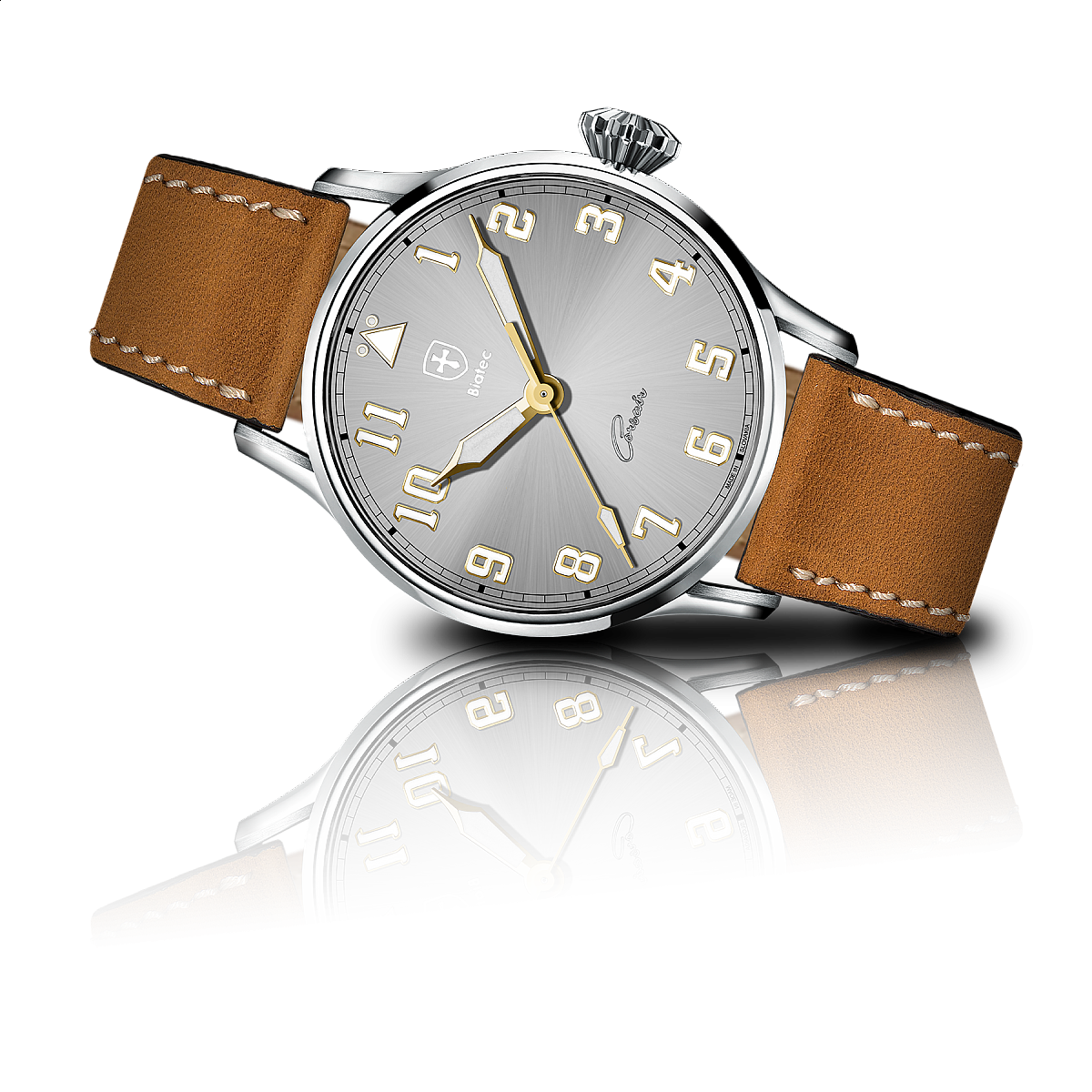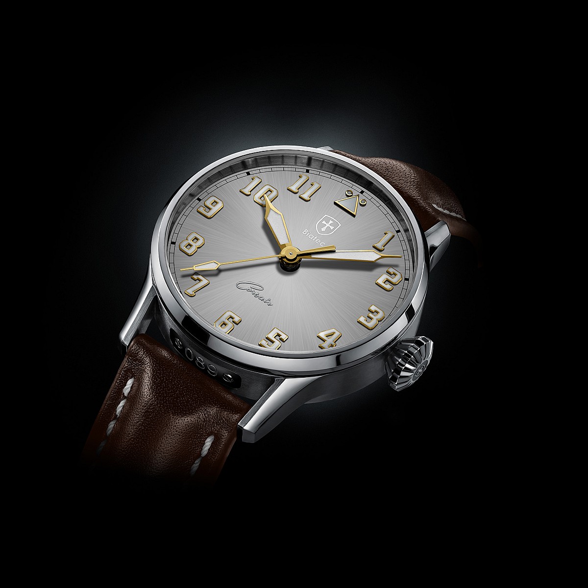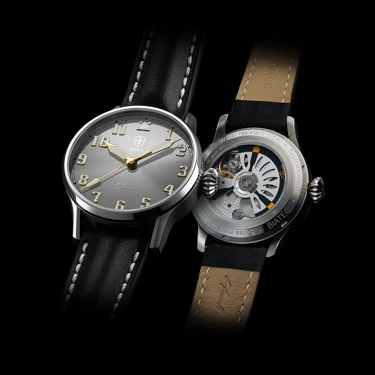 Biatec Corsair CS jsou špičkové moderní hodinky, jejichž design ovšem úspěšně evokuje slavné kapitoly letecké historie. Varianta 03 z modelové řady Corsair CS se vyznačuje stříbrným číselníkem s efektem centrálního brusu, zlacenými plastickými indexy vyplněnými luminisceční barvou a výraznými zlacenými ručkami rovněž se svítící výplní. Safírové sklo s antireflexní úpravou je samozřejmostí. Pilotní design umocňuje výrazná, tzv. diamantová korunka, jež je pro zajištění vodotěsnosti (10ATM) šroubovací. Hodinky jsou poháněny vynikajícím švýcarským strojkem Eterna 3902A, jenž se vyznačuje rezervou nátahu 65 hodin. Pro tuto variantu strojku je typické centrální umístění vteřinové ručky. Pouzdro o průměru 40 mm je vyrobeno z nerezové oceli 316L. Pouzdro je osazeno dýnkme s průhledem, kterým lze pozorovat strojek s rotorem, jenž je doplněn miniaturou vrtule slavné americké stíhačky Vought F4U Corsair.