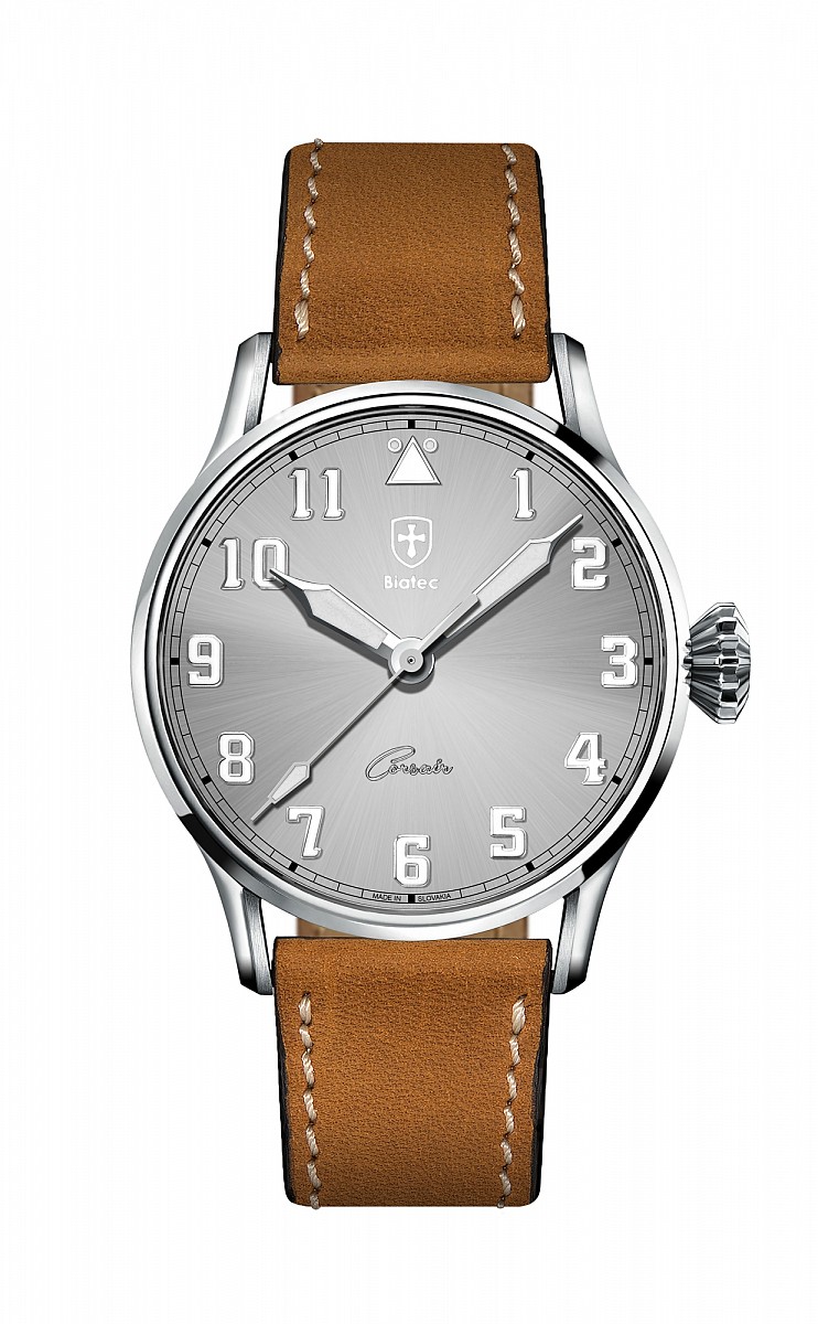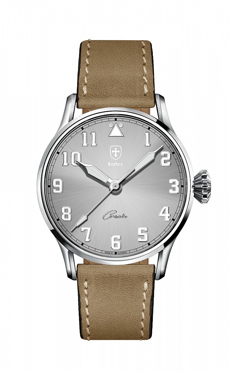 Biatec Corsair CS jsou špičkové moderní hodinky, jejichž design ovšem úspěšně evokuje slavné kapitoly letecké historie. Varianta 04 z modelové řady Corsair CS se vyznačuje stříbrným číselníkem s efektem centrálního brusu, plastickými indexy vyplněnými luminisceční barvou a výraznými ocelovými ručkami rovněž se svítící výplní. Pilotní design umocňuje výrazná, tzv. diamantová korunka, jež je pro zajištění vodotěsnosti (10ATM) šroubovací. Hodinky jsou poháněny vynikajícím švýcarským strojkem Eterna 3902A, jenž se vyznačuje rezervou nátahu 65 hodin. Pro tuto variantu strojku je typické centrální umístění vteřinové ručky. Samozřejmostí je pouzdro z nerezové oceli 316L a safírové sklo s antireflexní úpravou, zvláštností je pak provedení rotoru, jenž je doplněn miniaturou vrtule slavné americké stíhačky Vought F4U Corsair.