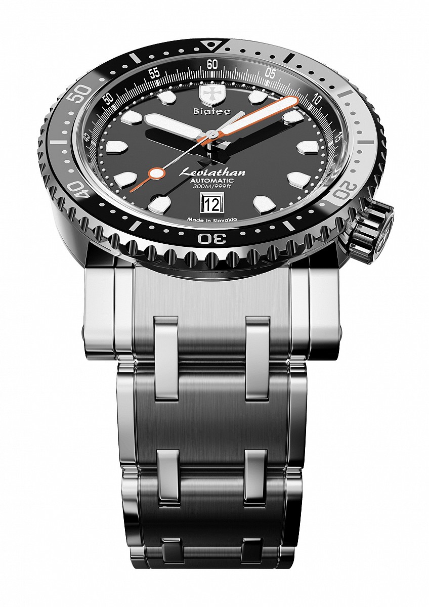 Slovenská značka Biatec představila po více než 2 letech vývoje “bestii”, která zvládne i ty nejnáročnější podmořské podmínky – Biatec Leviathan. Tyto potápěčské hodinky mají leštěné nerezové pouzdro o průměru 40 mm, které má tvrzenou povrchovou úpravu NanTec s tvrdostí podle Vickerse až 600HV. Nerezový náramek je rovněž vytvrzen touto technologií. Díky tomu jsou hodinky velmi odolné vůči poškrábání. Šroubovací korunka s logem značky je umístěna na pozici 4. hodiny, díky čemuž netlačí do zápěstí. Černý lakovaný číselník s plastickými idexy a je kryt 3,5 mm safírovým sklíčkem s dvojitou vnitřní antireflexní vrstvou proti nežádoucím odleskům. Jednosměrně otočná luneta má safírovou vložku s minutovou stupnicí a luminiscenčními indexy. Pohon hodinek je zajištěn osvědčeným švýcarským strojkem Sellita SW200-1. Hodinky mají pevné dýnko s rytinou Leviathana. Vodotěsnost hodinek je 30 ATM.