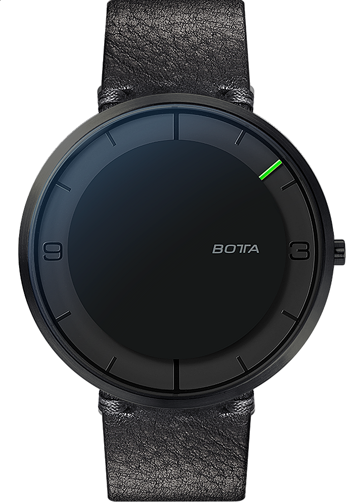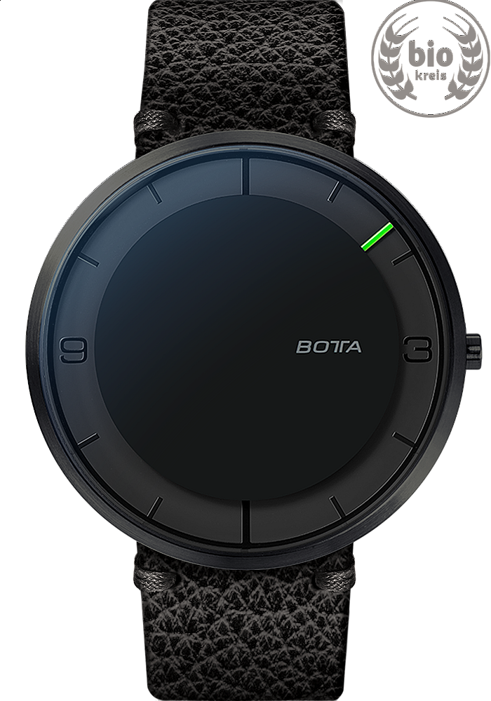 Černá verze unikátních jednoručkových hodinek se švýcarským quartzovým strojkem Ronda 704. Tento model vyniká neobvyklým designem číselníku, na kterém ukazuje čas jediná ručka pozvolna plynoucí mezi hodinovými indexy. Čas zde hraje důležitou roli, ale právě spíše zdůrazněním svého plynutí, nežli v zobrazení exaktních časových intervalů. Vše je tu podřízeno této minimalistické koncepci a neobyvklému designu. Podklad hodinové škály na obvodu je inverzní, tzn. u tohoto modelu černý.