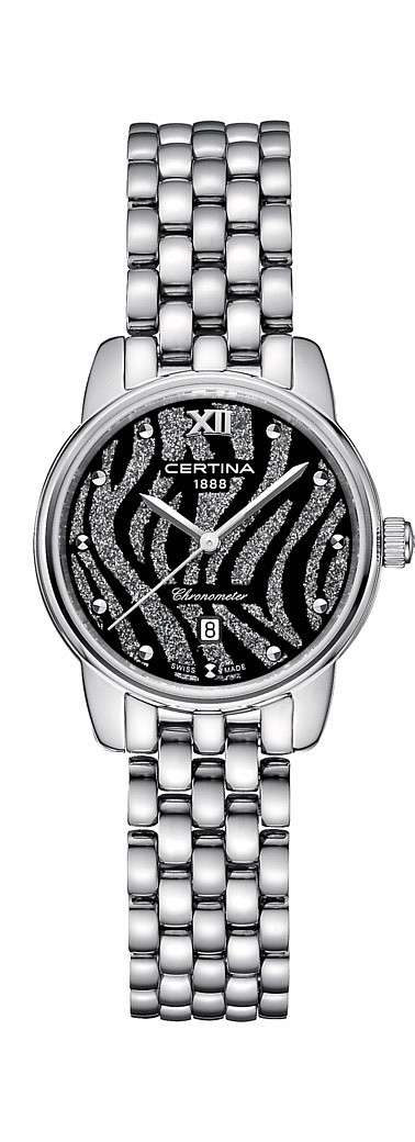 Certina DS-8 Lady jsou elegantní dámské hodinky s průměrem nerezového pouzdra 27mm. Hodinky pohání quartzový strojek, který je certifikovaným chronometrem s přesností chodu ±10 vteřin za rok. Praktická je indikace končící životnosti baterie, nepoškrábatelné safírové sklo s antireflexní úpravou a solidní voděodolnost 10 ATM (100 m).