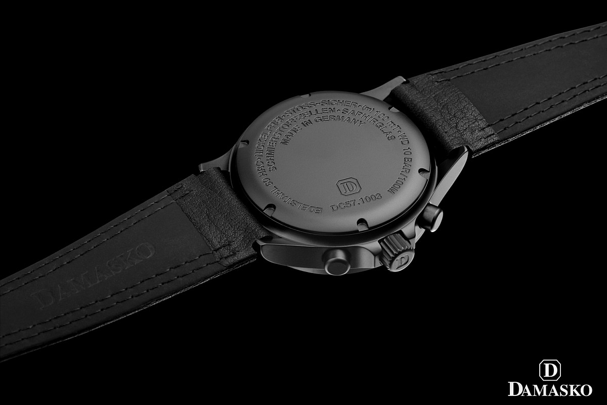 Verze s černou povrchovou úpravou DAMEST® (paternt firmy Damasko) o tvrdosti až 2500HV a světlým luminiscenčním číselníkem