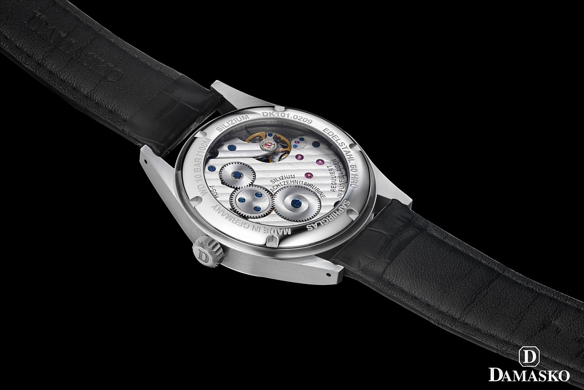 Dlouho očekávané společenské hodinky Damasko se strojkem vlastní konstrukce (in-house kalibr H35-1 s ručním nátahem). Hodinky vynikají dokonalým zpracováním, které ocení všichni znalci a milovníci kvalitních hodinek. Při výrobě byly použity ty nejprogresivnější výrobní technologie a materiály včetně některých zcela ojedinělých a inovativních konstrukčních prvků. Tyto technicky precizní hodinky však vynikají i mimořádnou designovou čistotou, přehledností a vyvážeností. S těmito hodinkami se Vám tak dostane do ruky perfektní spojení technické dokonalosti a vytříbené elegance. Díky své odolnosti a užitným vlastnostem se hodinky Damasko DK100 mohou stát Vaším průvodcem ve většině běžných životních situacích.