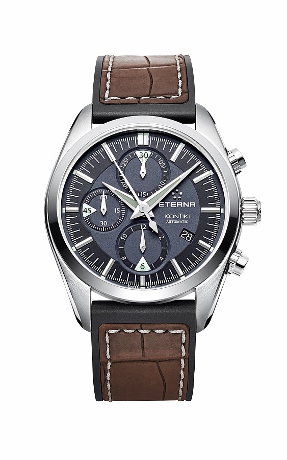 Eterna Kontiki Chronograph black rubber/brown leather