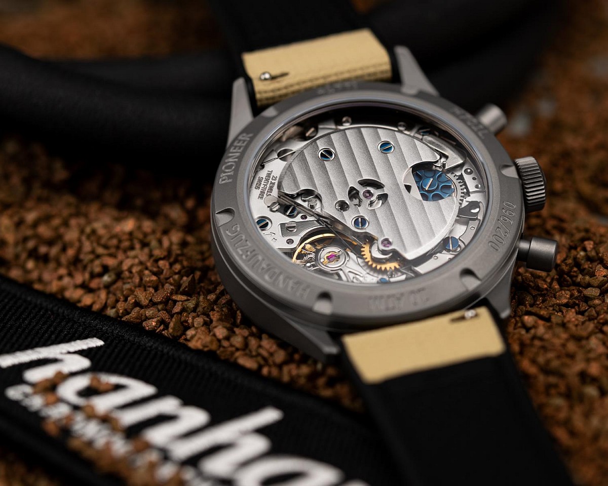 Model o průměru 42 mm je striktně limitován na pouhých 200 kusů. Hodinky jsou vybaveny vysoce klenutým safírovým sklem a vodotěsností 10 bar (odpovídá normě DIN 8310). Funkční design doplňuje odolný strukturovaný pryžový řemínek ukotvený titanovou sponou.