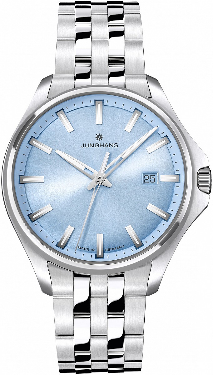 jsou elegantní dámské quartzové hodinky v nadčasovém klasickém pojetí. Ocelové pouzdro o průměru 35 mm doplňuje komfortní náramek z nerezové oceli s motýlkovou sponou. Výrazným prvkem je gradientní světle modrý číselník se slunečním brusem, doplněný praktickým ukazatelem data na pozici třetí hodiny. Číselník chrání safírové sklo s antireflexní úpravou. Ručičky i indexy jsou opatřeny luminiscenční vrstvou Super-LumiNova®, která zajišťuje výbornou čitelnost i za snížených světelných podmínek. O přesný chod se stará quartzový strojek Junghans J645.38 s indikací slabé baterie. Vodotěsnost 10 ATM umožňuje hodinky bez obav používat při plavání i šnorchlování.