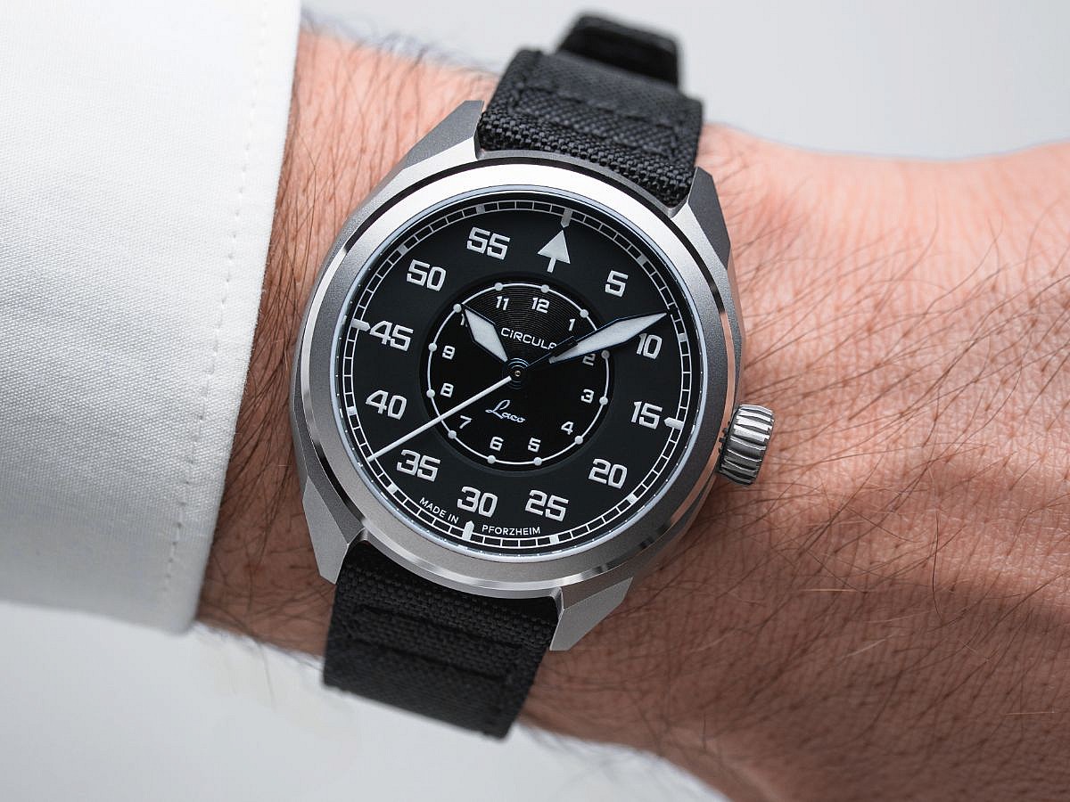 Model ProLab Schwarz kombinuje výrazný design pouzdra Circula ProTrail s jasným vizuálním jazykem klasických pilotních hodinek Typ B (navigátorské hodinky).