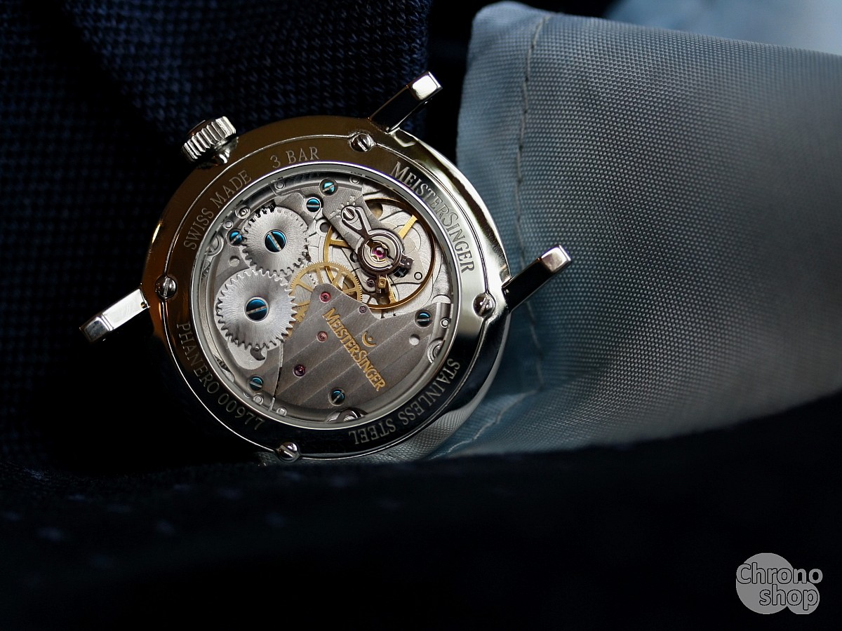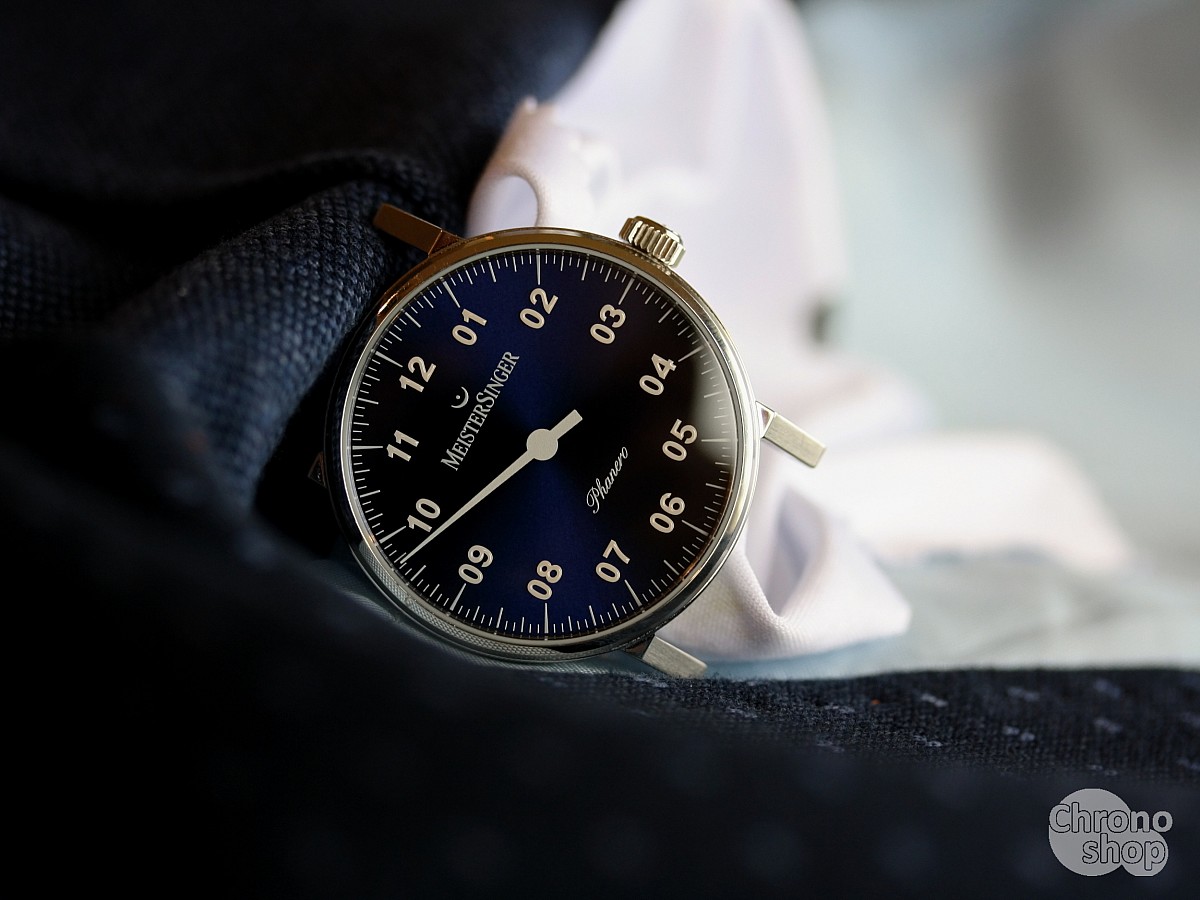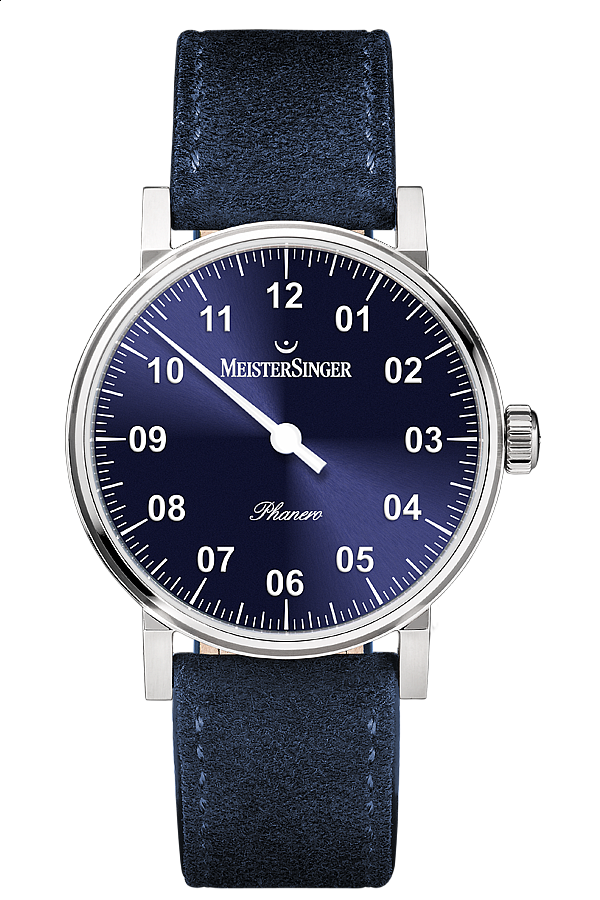 Model Phanero se v kolekci MeisterSinger vyznačuje nejmenší velikostí, je ale stvořen i pro ty největší příležitosti. Čas je zobrazován tradičně pomocí bíle centrální ručky, díky které hodinky na první pohled zaujmou. Originální modrý ciferník s efektem centrálního brusu s bílými číslicemi je chráněn klenutým safírovým sklem. Průhledným dýnkem můžeme pozorovat švýcarský mmanuální strojek Sellita SW 210 s rezervou nátahu 42 hodin.