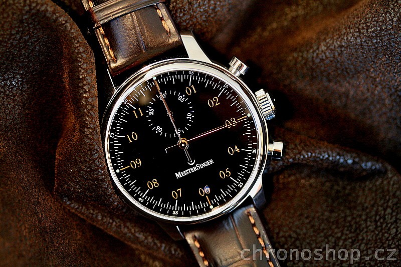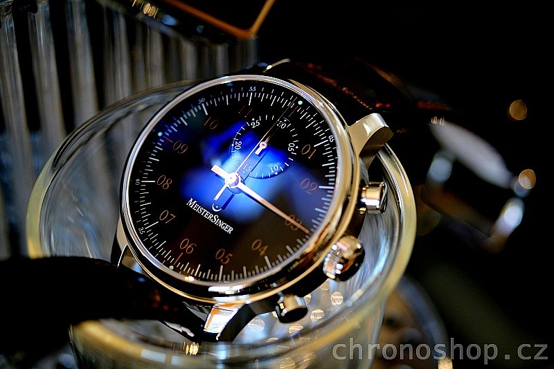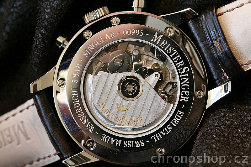 Singular – jméno modelu má základ v latinském slově singularis, znamenající ojedinělý, jedinečný. Tímto novým výtvorem MeisterSinger znovu vylepšuje svůj charakteristický rukopis, který spojuje nadčasové proporce a nový, moderní vzhled ciferníku. Hodiny používají velkou ručku k určování času, ale také další jemnou centrální sekundovou ručku a malou ručku na pozici 12, pro funkci stopek s třicetiminutovým čítačem. Unikátní chronograf, který vyjadřuje spíše klid a souměrnost, než dynamiku a rychlost jak bývá u stopek obvyklé.