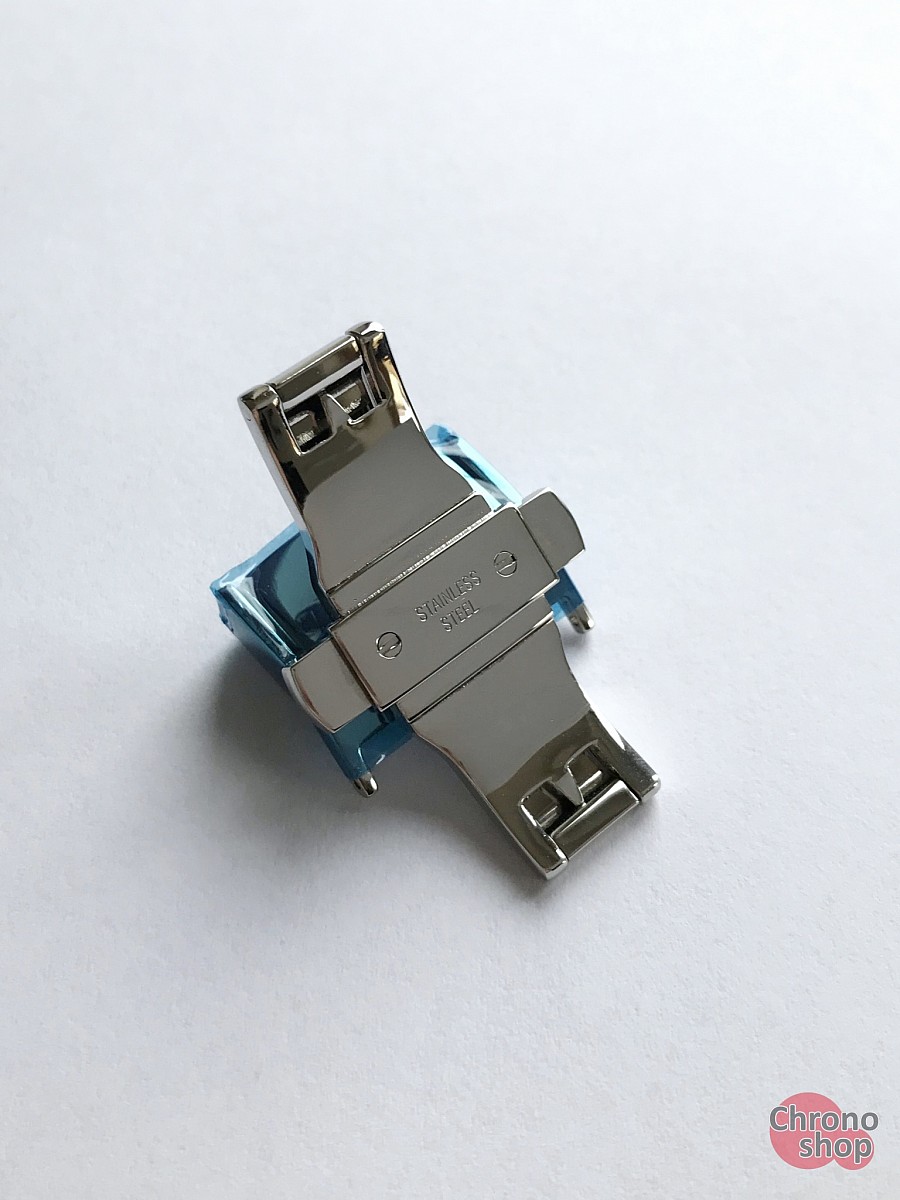 Motýlová spona s bezpečnostní pojistkou z nerezové oceli s leštěnou povrchovou úpravou. Vhodná pro kožené řemeny s maximální tloušťkou 3,5 mm. Překlápěcí spony nejen, že prodlužují životnost vašich řemínku, protože nedochází k jejich ohýbaní při pravidelném zapínání, ale také mají pohodlnější způsob zapínání, který zamezuje náhodnému upuštění hodinek při nasazování na zápěstí.