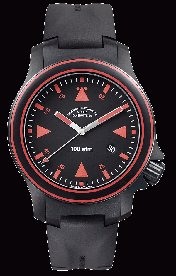 Typická červená barva se nachází nejen na černočervené keramické lunetě, ale také v designu číselníku. Ručky, hodinové indexy a orientační trojúhelníky jsou kompletně potažené červeným luminiscenčním materiálem. Tento sportovní a výrazný design tak skvěle naplňuje zamýšlený účel - aby tyto mimořádné hodinky sloužily nejen při záchranných misích, ale také jako časomíra při plachtění a surfování, na cyklistických vyjížďkách, trekových túrách, ale i v běžném civilním životě.