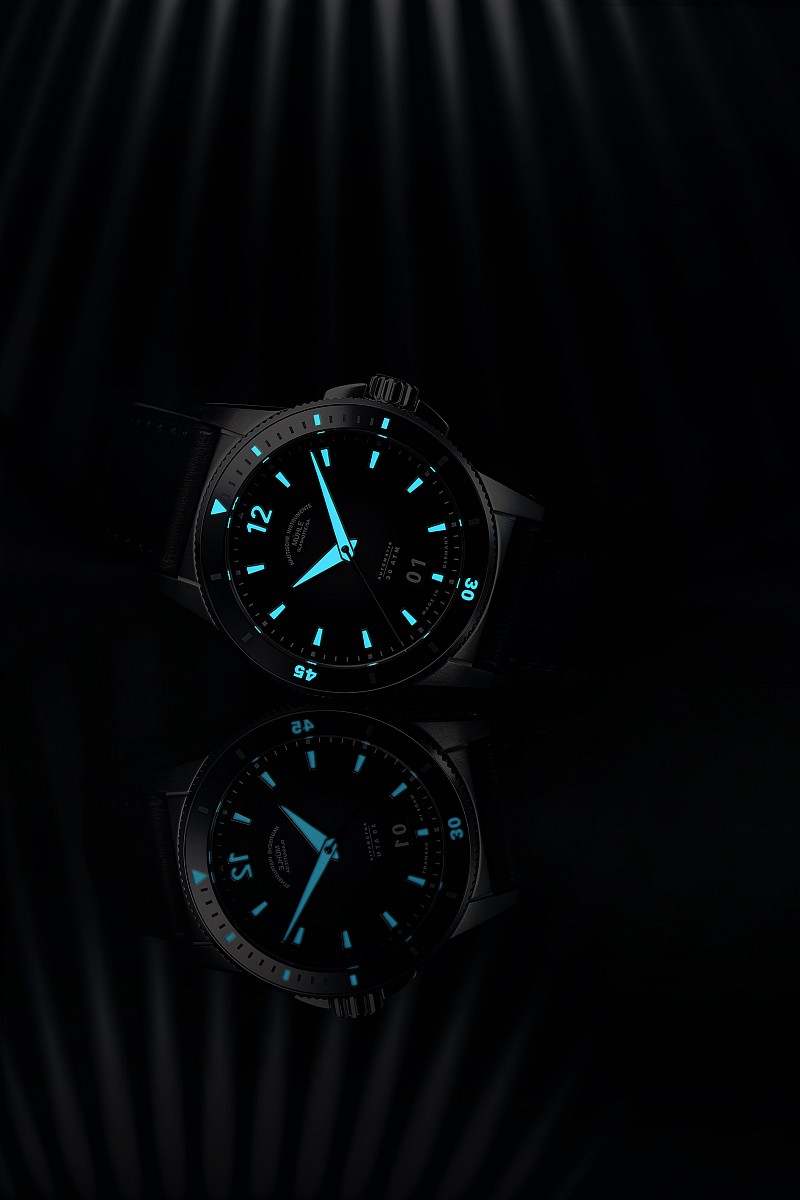 Číslice „12“ a výrazné hodinové indexy mají jemné, leštěné niklované rámečky, díky nimž mohou být velkoryse potaženy bílým luminiscenčním materiálem. Totéž platí pro hodinovou a minutovou ručičku. Tato souhra poskytuje vynikající kontrast k černému ciferníku během dne a intenzivní svítivost v noci, což zaručuje vynikající čitelnost za všech podmínek.