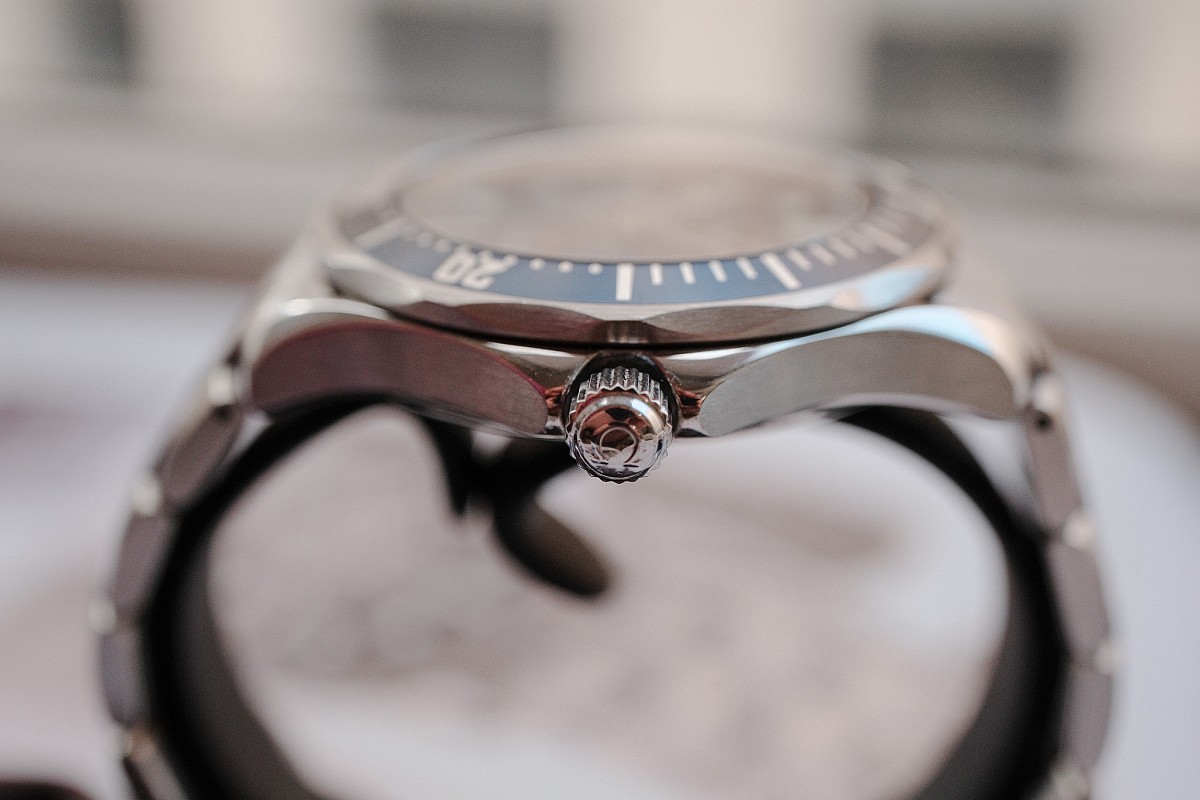 - Odolnost: Safírové sklo s antireflexem a potvrzená vodotěsnost 300 m s heliovým ventilem.
