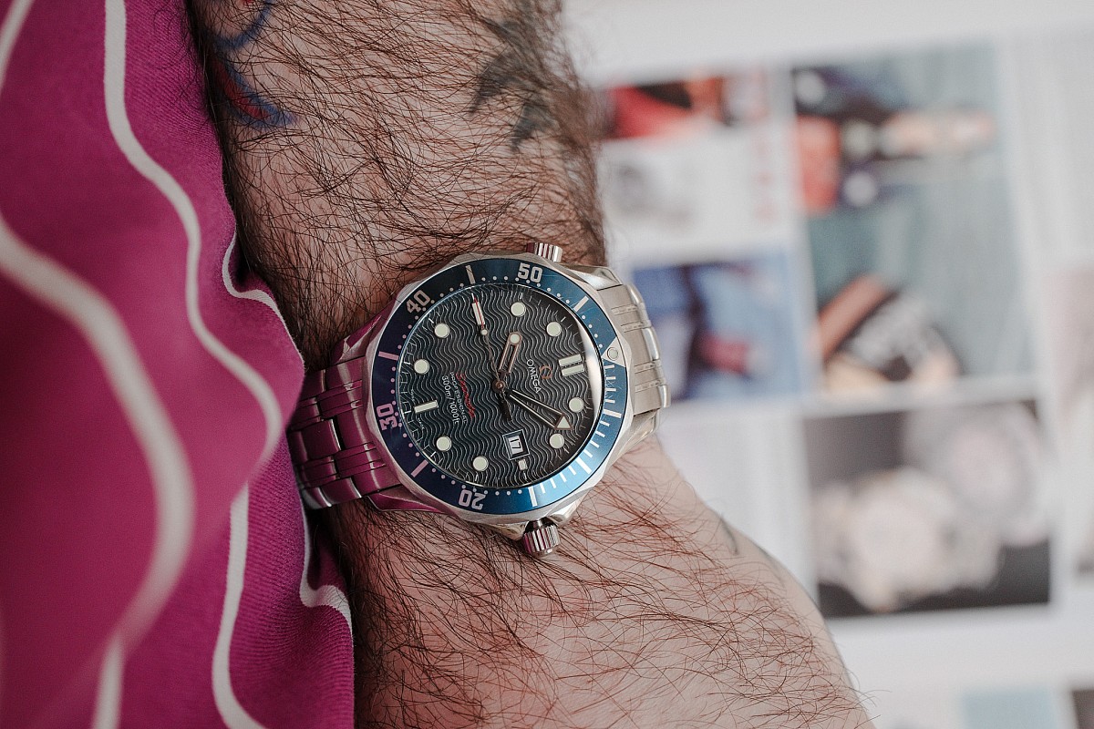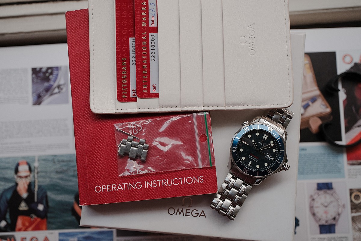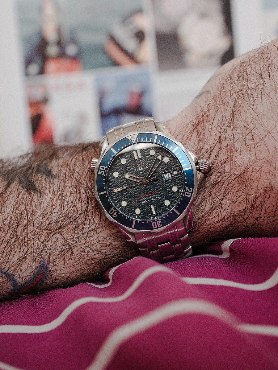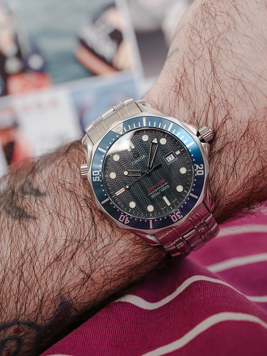 Některé hodinky nestárnou, ale zrají. Legendární modré „bondovky“ s motivem vlnek na ciferníku patří přesně do této kategorie. V našem bazaru se právě objevil velmi vyhledávaný quartzový model s referencí 2221.80.00. Jde o modernizovanou verzi klasiky z 90. let, která už nabízí luxusnější plastické (aplikované) indexy s kovovým orámováním, plastické logo Omega a výrazný červený nápis Seamaster. Dokonalé, bezúdržbové luxusní hodinky na každý den.