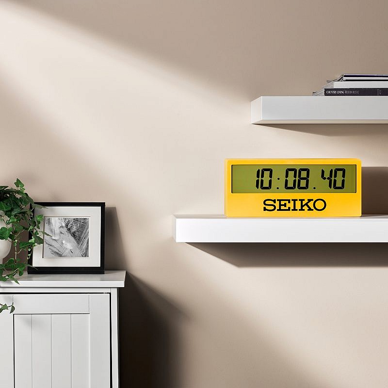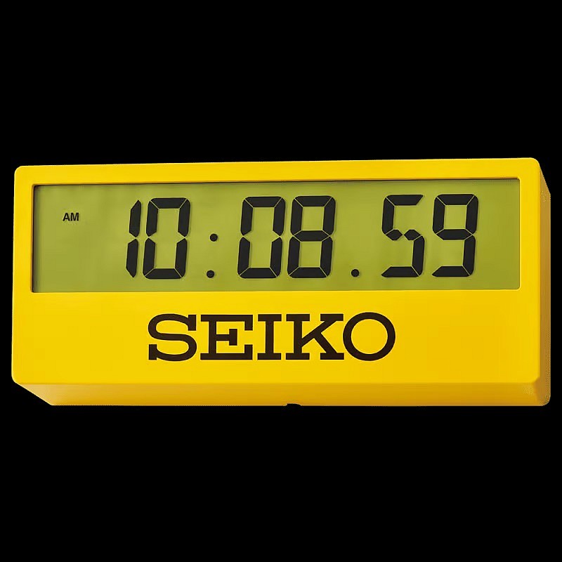 Seiko QHL073Y – Stylový digitální budík v designu ikonické sportovní časomíry. Nabízí funkce budíku, kalendáře a odpočet kalendáře. Perfektní dárek pro sportovce a fanoušky značky Seiko. Žluté provedení se stojánkem.