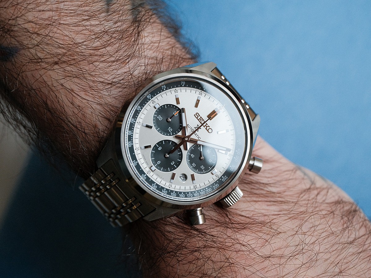 Pánské automatické hodinky Seiko Prospex Speedtimer Mechanical Chronogragh SRQ047J1 na kovovém náramku v kombinaci matu a lesku s překlápěcí sponou. Pouzdro z nerezové oceli má průměr 42 milimetrů a vnitřní lunetu s funkcí tachymetru. Bílý číselník s černými subciferníky, tzv. panda dial, s funkcí chronografu a indikací data je chráněn odolným safírovým sklem s antireflexní vrstvou. Aplikované hodinové indexy jsou stejně jako ručky pokryty luminiscenčním nátěrem LumiBrite, který garantuje perfektní čitelnost za zhoršených světelných podmínek. Pohon hodinek zajišťuje mechanický strojek 8R48 s automatickým nátahem a rezervou chodu přibližně 45 hodin. Tento manufakturní strojek s funkcí hackingu lze v případě potřeby natahovat i ručně pomocí korunky. Vodotěsnost hodinek činí 10 ATM a jsou vhodnou volbou pro koupání nebo šnorchlování.
