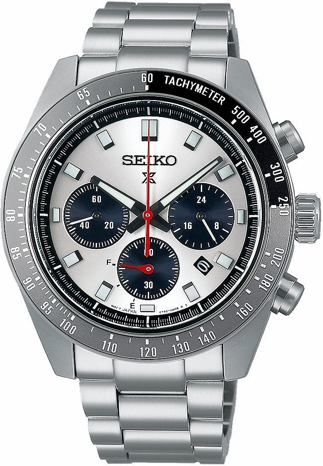 Solární chronograf Seiko Speedtimer poháněný kalibrem V192 s funkcí 60 min chronografu a přesnost měření na 1/5 sekundy, ukazatelem data, indikátorem nabití a přesností ±15 vteřin za měsíc vznikl jako pocta ikonickému modelu Speedtimer. Tvar pouzdra zůstává věrný originálu, ale jeho průměr 41,4 mm, kombinace broušených a leštěných ploch spolu se zakřiveným safírovým sklíčkem s vnitřním antireflexem dodávají moderní nádech. Bílý číselník má pískovanou úpravu, která zajišťuje vysokou úroveň čitelnosti a je základní charakteristikou všech hodinek řady Prospex Speedtimer Solar Chronograph stejně jako vodotěsnost, která činí 10 ATM.