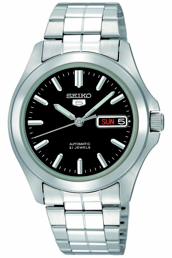Jednoduché ale spolehlivé hodinky z řady Seiko 5 s typickým ukazatelem data a dne v týdnu v univerzální “unisex” velikosti 38 mm.