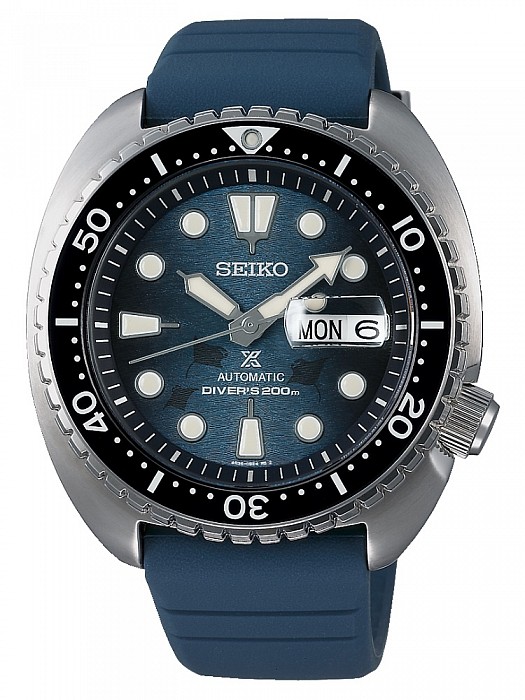 Seiko SRPF77K1 Prospex „Turtle Dark Manta” Save the Ocean navazující na legendární a úspešný model Seiko „Turtle” z přelomu 70. a 80. let, tzv. „želvy”. Oproti předchozím variantám želv je tento model vybaven safírovým sklem, má přepracovanou lunetu s keramickou vložkou a zajímavý černo-modrý degradé číselník s motivem rejnoků manta.