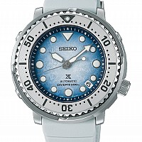 Seiko Prospex Save The Ocean Special Edition „ Antarctica Tuna”. Tyto „Antarctica Tuna” mají strukturovaný číselník připomínající ledovou pokrývku se stopami tučňáka. Hodinky Seiko z řady Prospex jsou určeny nejenom pro milovníky sportu, jako jsou například potápěči, jejichž důvěru si potápěčské hodinky Seiko celosvětově uchovávají již po několik desítek let.