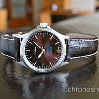 Varianta oblíbeného modelu 556 I s hnědým číselníkem bez datového okénka. Aplikované indexy, dobrá vodotěsnost, příjemná velikost – to vše činí z těchto hodinek velmi univerzální volbu.
