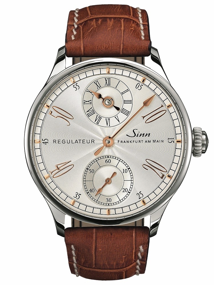 Sinn se v řadě svých hodinek 6100 znovu přihlásil k nadčasové tradici přesných regulátorů. Koncepci regulátoru přetransformoval v současné náramkové hodinky vytříbeného vzhledu. Klasický vzhled podtrhuje gilošovaný ciferník s kontrastními, ručně vsazenými aplikami indexů.