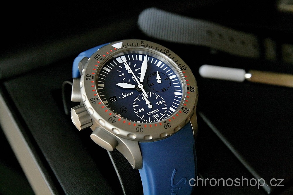 Potápěčský chronograf U1000 B je barevnou variantou modelu U1000 (EZM 6). Jedná se o robustní hodinky s ovládacími prvky netradičně na levé straně. Tlačítka a korunka jsou tak přirozeně chráněny proti poškození a nepřekáží při činnosti ani zemi ani pod vodu. Vysoká vodotěsnost 1000 m spolu s užitím Ar-vysoušecí technologie zajišťuje bezvadnou funkčnost a čitelnost i v hlubinách oceánu. Povrchová úprava TEGIMENT zaručuje odolnost pouzdra proti poškrábání stejně tak jako silné safírové sklo.