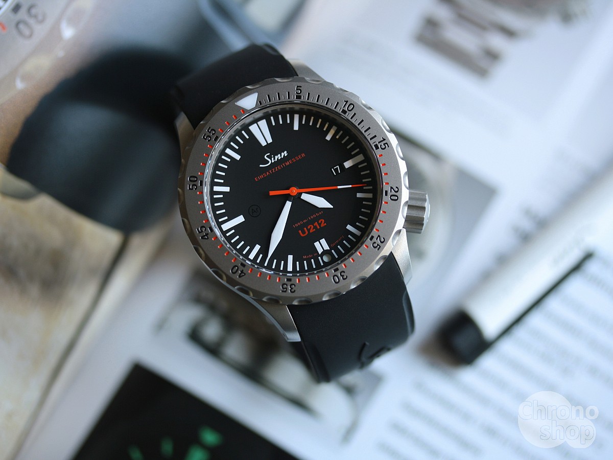 Potápěčské hodinky U212 s přívlastkem “Mission Timer”, jsou pojmenované po nejmodernější ponorce německého námořnictva, se kterou sdílejí nejen název ale i materiál, ze kterého jsou vyrobeny. Tyto hodinky, jsou navrženy tak, aby za využití těch nejmodernějších technologií značky SINN, fungovaly i v těch nejtěžších podmínkách a splňovaly všechny nároky, které na ně může jejich majitel mít. Jsou tedy opatřeny Ar-vysoušecí kapslí, mají tegimentovou úpravu lunety, schopnost fungování v rozmezí teplot –45°C up to +80°C a především extrémně vysokou vodotěsnost 100 ATM. Samozřejmostí je pak dokonalá přehlednost a čitelnost za všech podmínek a spolehlivý švýcarský strojek s automatickým nátahem.