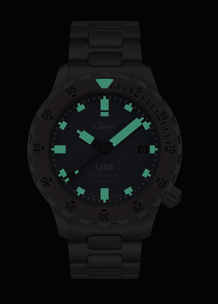 V duchu tradice značky SINN kombinuje model U50 B promyšlený design s technickou dokonalostí: pouzdro a korunka jsou vyrobeny z vysoce pevné, mořské vodě odolné ponorkové oceli s nejvyšší nemagnetickou kvalitou – materiálu, který se jinak používá pouze pro extrémní námořní účely. Otočná luneta je obzvláště odolná proti poškrábání, protože byla dále zpevněna technologií TEGIMENT. Praktický detail: korunka je umístěna na pozici 4 hodin, aby se zabránilo tlaku na hřbet ruky.
