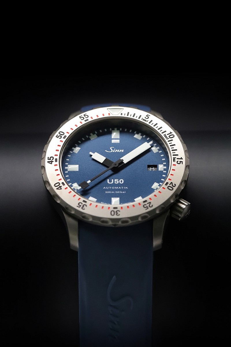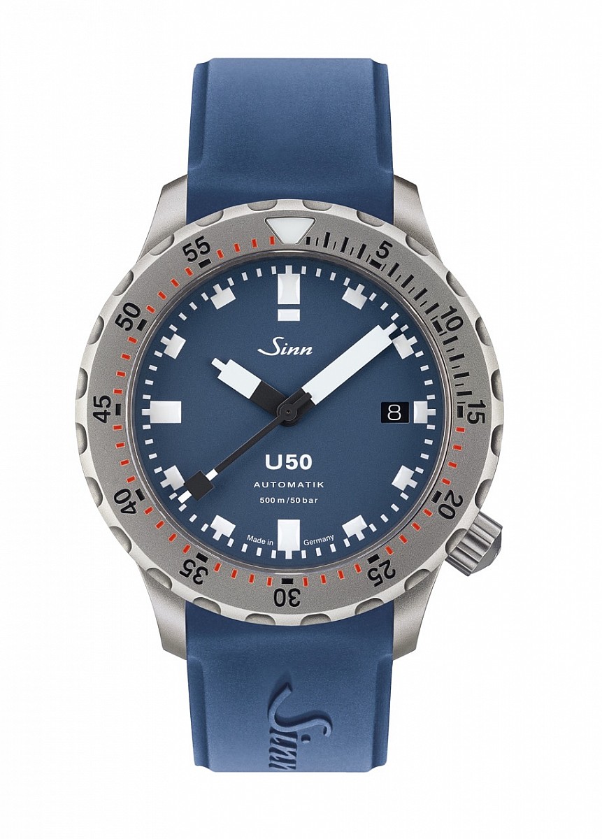 Vzhled hodinek Sinn U50 vycházi z dnes již ikonického modelu U1, který je v podstatě jejich větším provedením. Matný modrý číselník se specifickým designem indexů a ruček je nepřehlédnutelný a zároveň zachovává výbornou čitelnost. Pouzdro i korunka jsou vyrobeny z německé ponorkové oceli, která má zvýšenou odolnost proti mořské vodě. Tento typ oceli vyniká nejenom vysokou pevností a nemagnetickými vlastnostmi, ale také odolností vůči slané vodě. Otočná luneta je navržena tak, aby byla pevně uchycena v pouzdru a nemohlo při náraze dojít k jejímu upadnutí. Jelikož se jedná o velmi namáhanou součást hodinek, je luneta také vytvrzena technologií TEGIMENT, což zvyšuje její odolnost vůči poškrábání.
