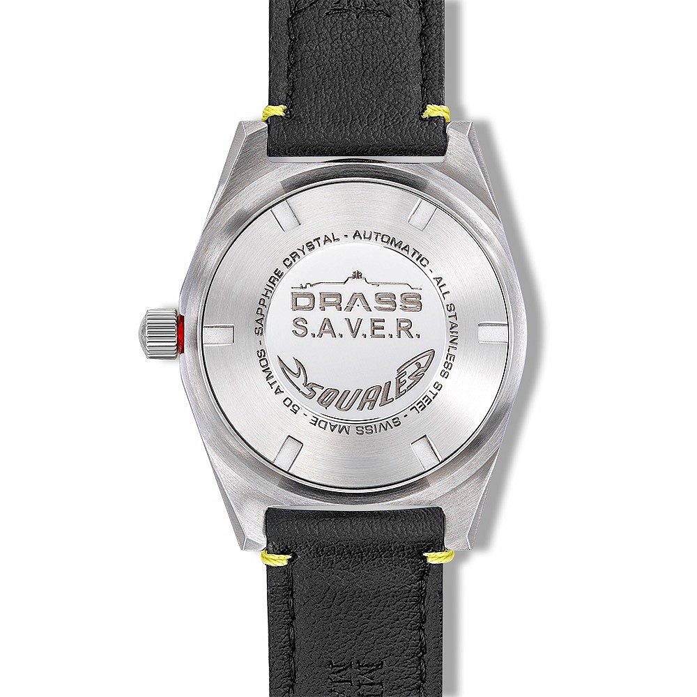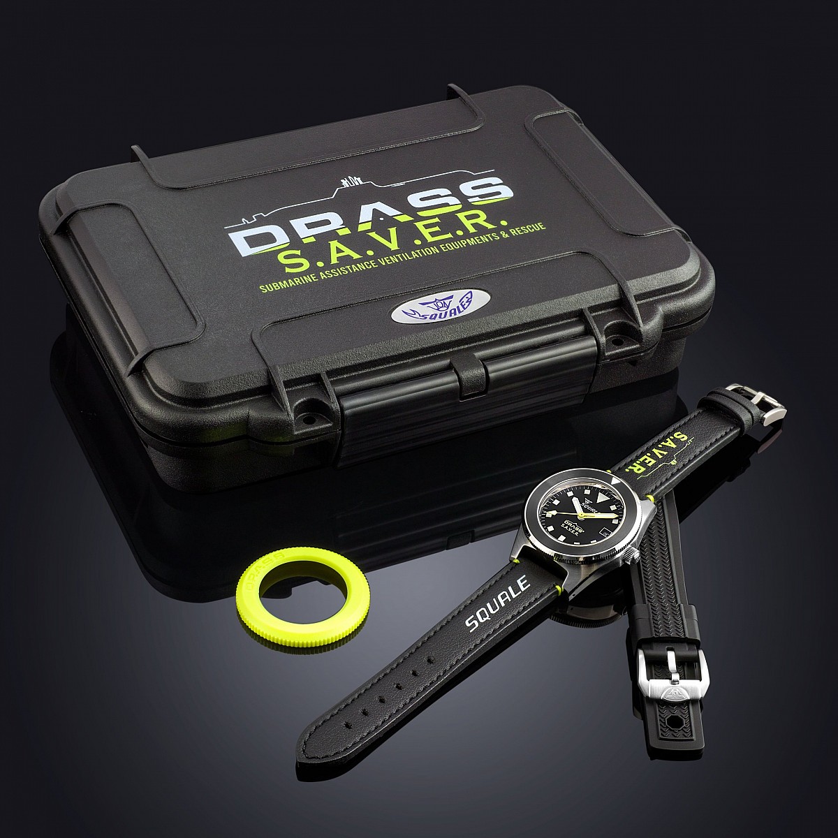 Na jedné straně švýcarskou tradici v oblasti profesionálních potápěčských hodinek a na druhé straně italské vedoucí postavení v konstrukci ponorek a technologiích pro hlubokomořské použití. Spojené dlouhou historií a stejným průkopnickým duchem představují nový model Squale DRASS S.A.V.E.R., inspirovaný inovativním záchranným systémem SAVER, navrženým pro zajištění bezpečných a efektivních záchranných operací i v těch nejextrémnějších mořských podmínkách.