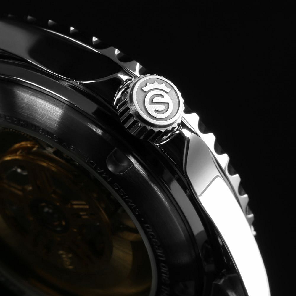 Ideální volba pro menší zápěstí nebo milovníky kompaktnějších hodinek. Model Ocean One 39 Nova zachovává všechny přednosti svého většího sourozence v 39 mm pouzdře. Dočkali jste se odstranění kontroverzního kyklopu – safírové sklo je nyní čisté a klenuté. Zadní strana hodinek nově nabízí průhled na spolehlivý kalibr Sellita SW200-1 Elaboré. Komfort nošení zajišťuje přepracovaný náramek, který se zužuje z 20 mm na 16 mm, což hodinkám dodává elegantní vintage nádech. Spona je vybavena systémem mikroregulace délky pomocí tlačitka na vnitřní straně spony.