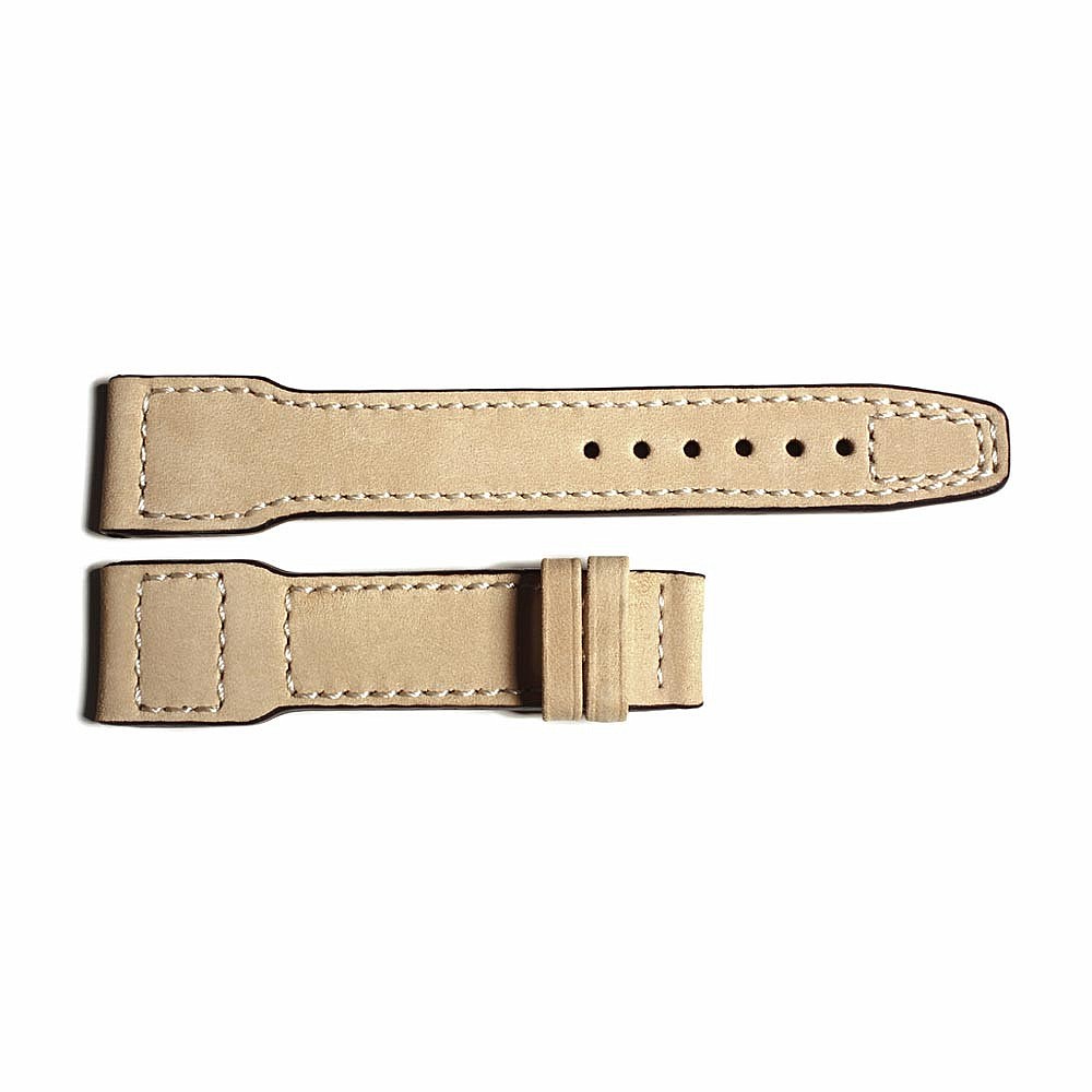 Ručně šitý, kožený řemen, béžové barvy. Dodáván bez spony. Šíře 22 mm u pouzdra, 18mm u spony.