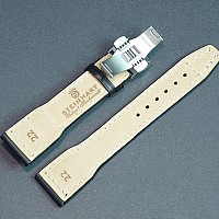 Ručně šitý pilotní řemen z teletiny v černé barvě. Šířka 22 mm u pouzdra, 18 mm u spony. Dodáván bez spony.