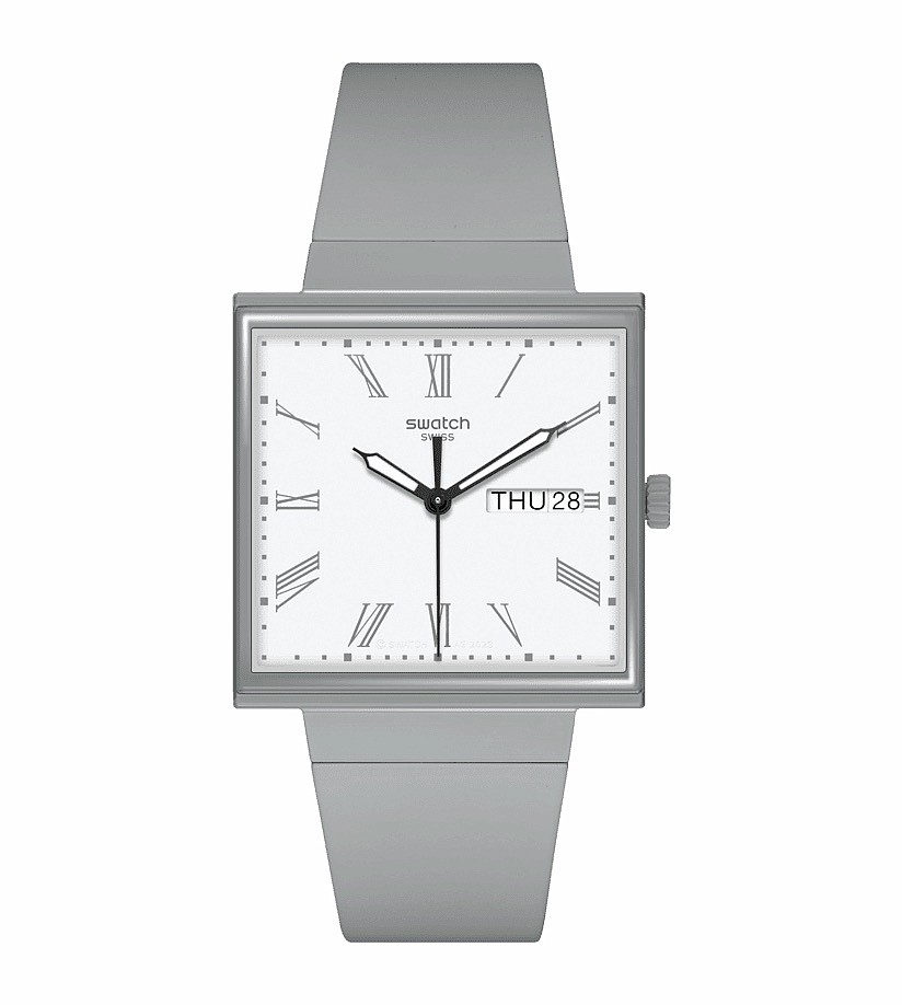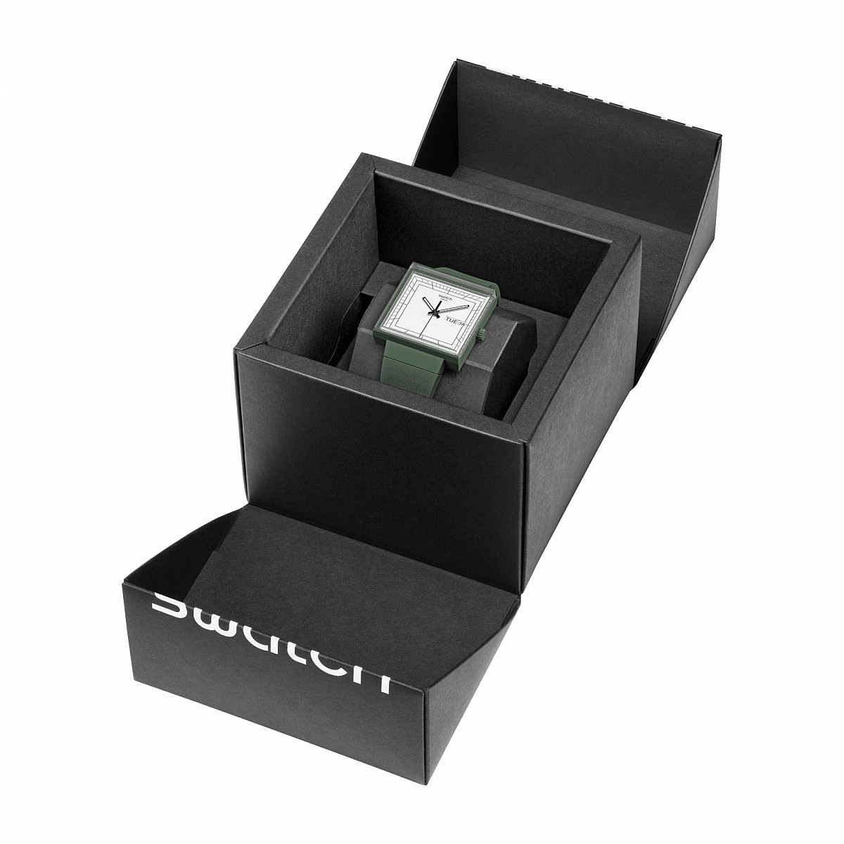 Univerzální hodinky s biokeramickým pouzdrem a nápaditým retro designem. BIOkeramické materiály jsou použity na pouzdro, sklíčkořemínek. Sklíčko díky čtvercovému designu sahá až do stran a vzniká tím nový průhled na indexy a samotný číselník. Na dýnku hodinek je vytištěná podobizna hodinek Swatch, které inspirovaly design nových čtvercových Swatchek.