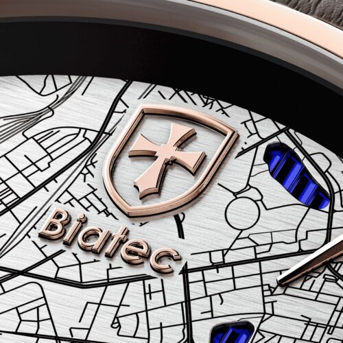 Tento neonový chronograf je inspirován hodinkami Swatch CHRONO: FLASH ARROW (SCL100) z 90. let. Pestrobarevný číselník s tachymetrickou stupnicí se pyšní černými hodinovými a minutovými ručičkami svítícími ve tmě, žlutou vteřinovkou a datumovkou na 3. hodině.