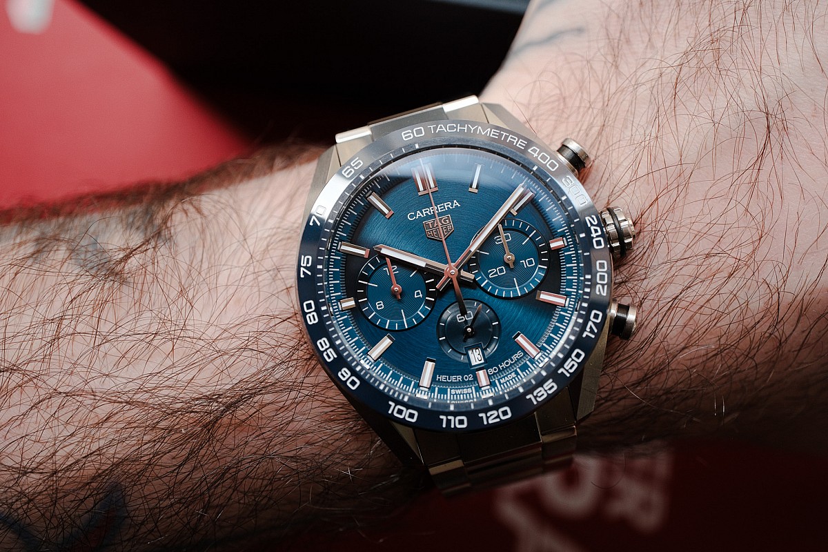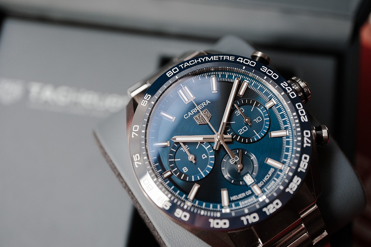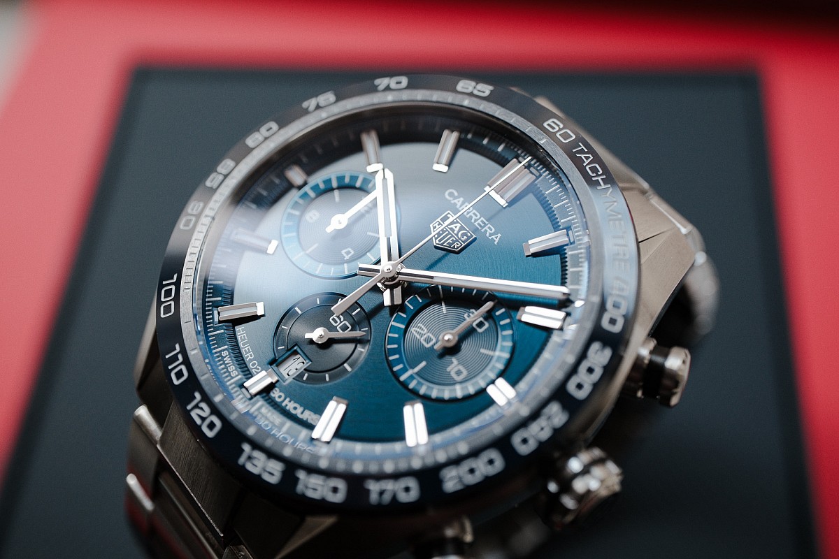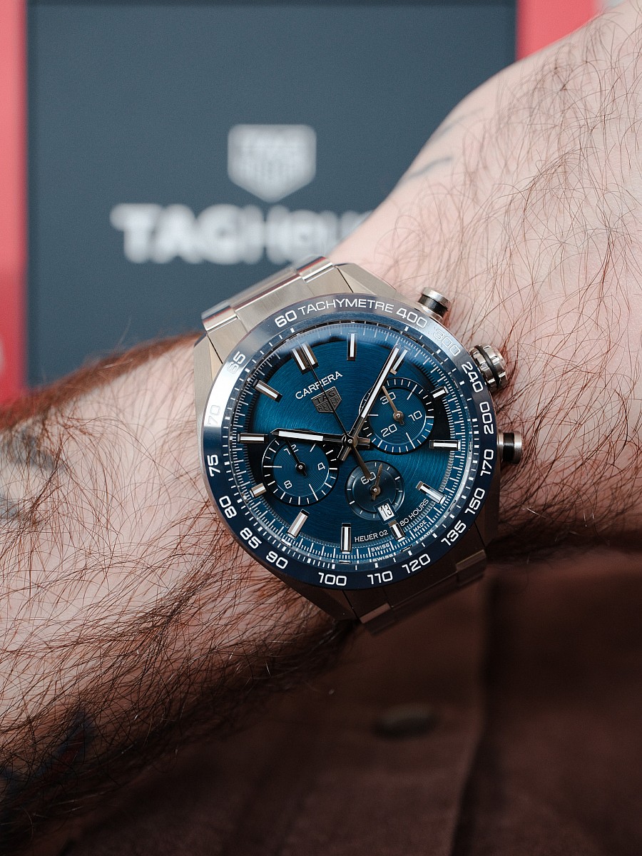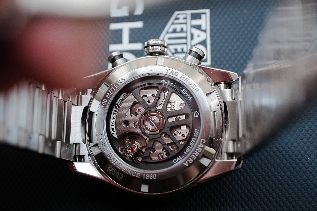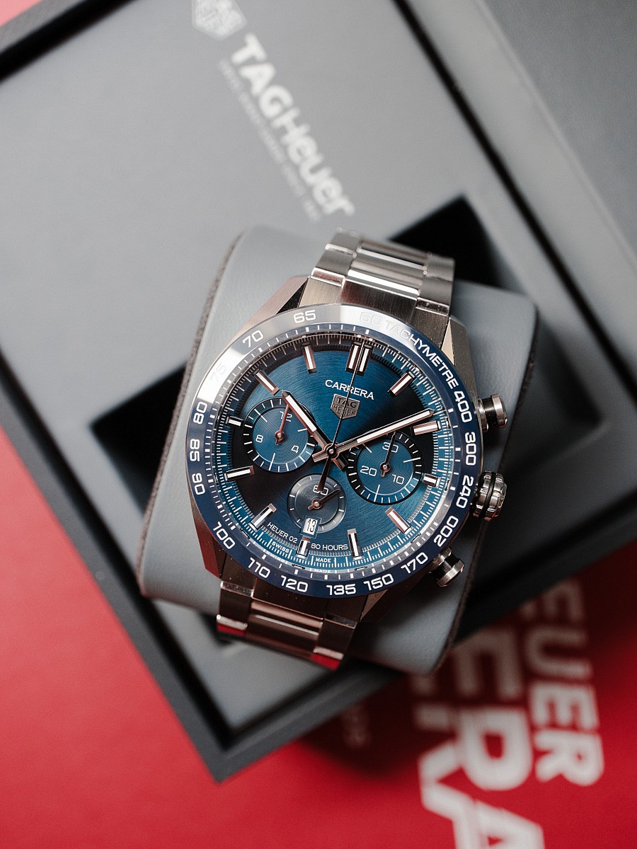 - Strojek: Manufakturní automatický chronograf Heuer 02 s rezervou chodu 80 hodin.