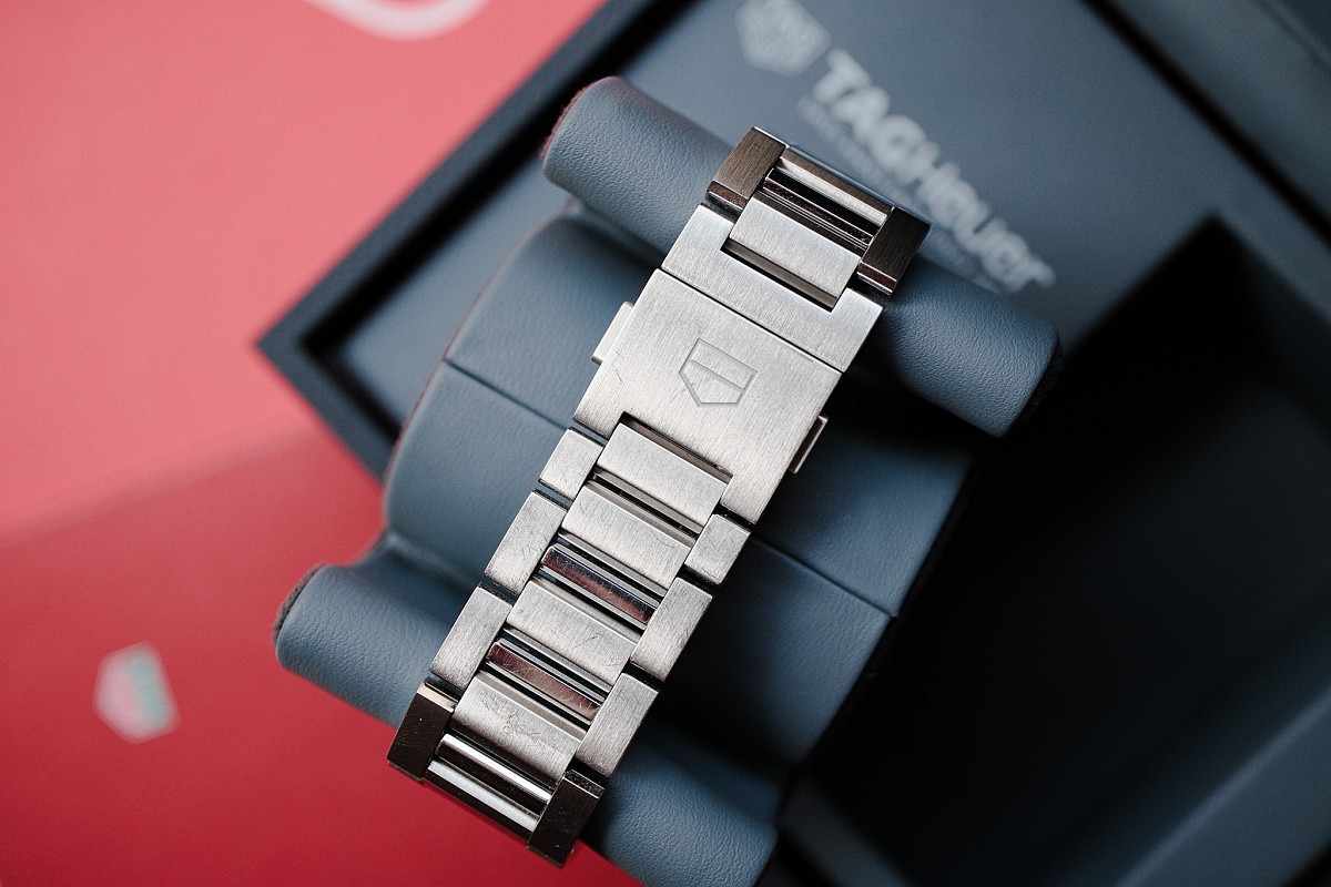 Uvnitř tepe to nejlepší, co Tag Heuer v současnosti nabízí – TH20-00 upgrade manufakturního kalibru Heuer 02. Tento moderní automatický chronograf se pyšní nadstandardní rezervou chodu 80 hodin a vertikální spojkou se sloupkovým kolem, což zajišťuje naprosto hladký a přesný chod stopek. Práci stroječku s černým rotorem můžete obdivovat přes safírové dýnko.