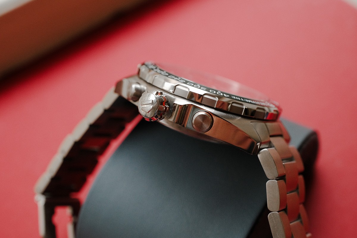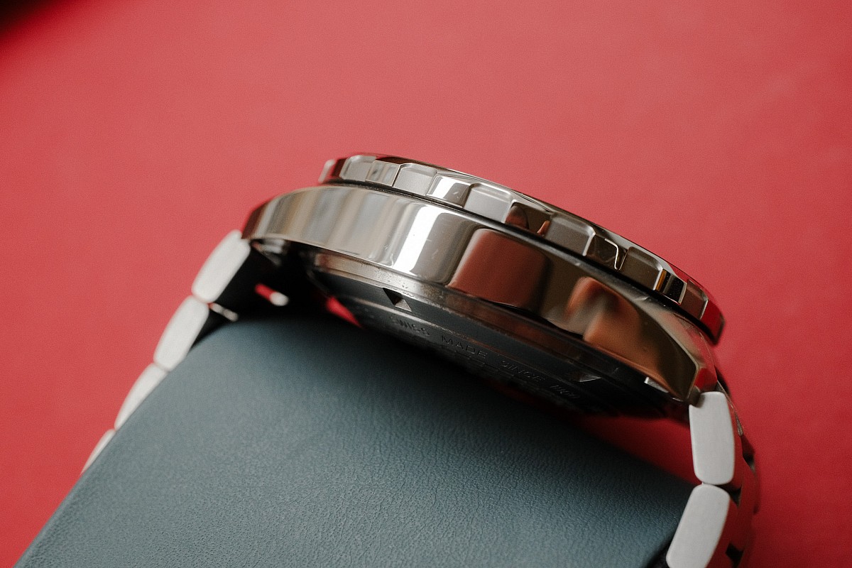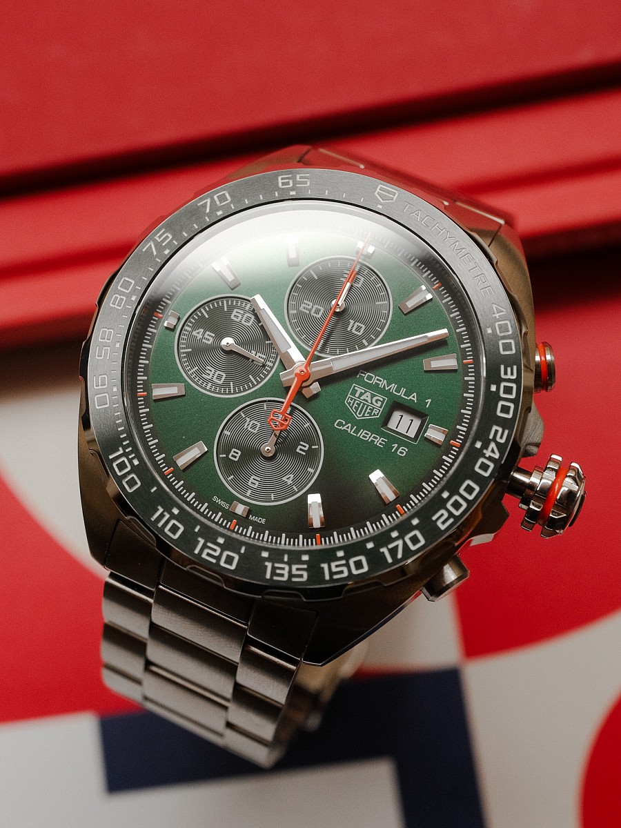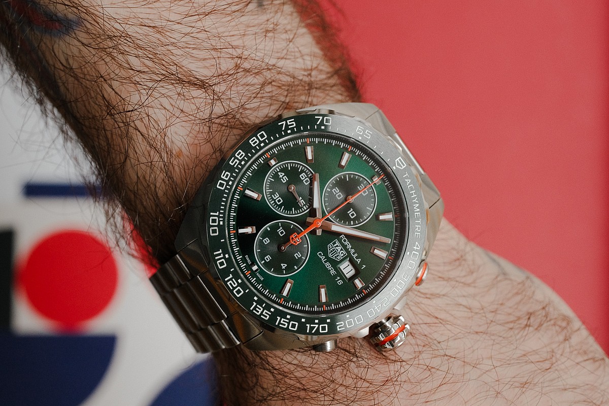 To zásadní je ale uvnitř. Zatímco většina „formulí“ jede na baterii, tento model pohání mechanický automatický strojek Calibre 16. Je to poctivá hodinařina, kterou ucítíte při každém pohybu ruky.