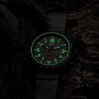 Traser Officer Pro Chronograph Green jsou univerzální outdoorové hodinky s funkcí stopek. Pouzdro z ušlechtilé oceli s černou PVD úpravou o průměru 46 mm a výšce 13,7 mm má lunetu tachymetrickou stupnicí. Díky rozměrům se jedná o poměrně velké hodinky. Číselník je kryt odolným safírovým sklíčkem s antireflexní úpravou. Tritiové indexy a ručky svítí zelenou barvou, kromě indexu na 12 hodině, který svítí oranžově. Bezchybný chod je zajištěn švýcarským quartzovým strojkem Ronda s funkcí stopek, zobrazení času a data. Vodotěsnost hodinek je 10 ATM.