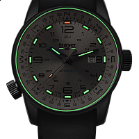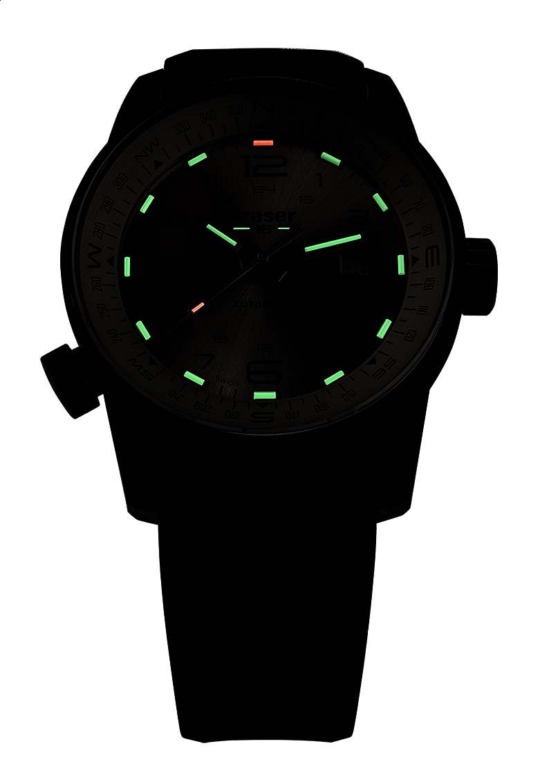 Model Traser P68 Pathfinder Automatic Beige je navržen speciálně pro světoběžníky a objevitele. Nezáleží na tom, jestli se právě nacházíte v džungli velkoměsta, uprostřed oceánu nebo na vyprahlé poušti, P68 Pathfinder Vám díky kompasové lunetě vždy ukáže nejenom čas, ale i směr. Nerezové pouzdro o průměru 46 mm má matnou černou povrchovou PVD úpravu. Číselník je kryt odolným safírovým sklíčkem s antireflexní vrstvou, která zajištuje perfektní čitelnost i za zhoršených světelných podmínek. Ručky a indexy jsou osazeny trubicemi s technologií Trigalight, která zajišťuje čitelnost ve tmě bez jakéhokoliv nasvícení po dobu více než 10 let. Na číslicích a ukazatelích světových stran na kompasové lunetě je nanesena luminiscenční vrstva SuperLuminova. Přesný a bezchybný chod je zajištěn švácarským mechanickým strojkem s automatickým nátahem Sellita SW200-1. Také díky šroubovací korunce jsou hodinky vodotěsné do 10 ATM.