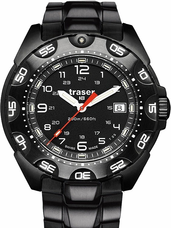 Traser Tornado Pro jsou odolné pánské potápěčské hodinky. Ocelové pouzdro s černou PVD úpravou má průměr 44 mm a výšku 12,35 mm a je osazeno ocelovou jednosměrně otočnou lunetu s minutovou potápěčskou stupnicí. Černý číselník s tritiovými luminiscenčními prvky je kryt odolným safírovým sklíčkem. Tritiové indexy a ručky svítí zelenou barvou, kromě indexu na 12 hodině, který svítí oranžově. Bezchybný chod je zajištěn švýcarským quartzovým strojkem Ronda 715.6 Li s funkcí zobrazení času a data. Vodotěsnost hodinek je 20 ATM.