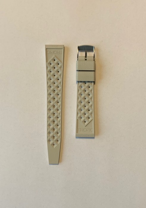 Pokud chtěli potápěči v 60. letech minulého století nahradit originální náramek jejich hodinek gumovým řemenem, tak s největší pravděpodobností sáhli právě po gumovém řemenu TROPIC®, který se za ta léta stal doslova legendou a vzorem pro mnohé moderní náhražky. Moderní TROPIC® řemeny si zachovaly kultovní texturu a siluetu jejich slavného předchůdce ze 60. let minulého století, který byl natolik populární, že jej jako oficální příslušenství nabízely značky jako Rolex, Blancpain, Enicar, Jenny Carribean a další. Díky novým technologiím jsou však moderní řemeny pohodlnější a odolnější než kdykoliv dříve. Pro výrobu každěho pravého řemenu TROPIC® se používá patentovaná vulkanizovaná pryž s vysokou pevností v tahu, která je hypoalergenní, odolná vůči UV záření a do značné míry odolná vůči nepříznivým účinkům způsobeným extrémním teplem nebo chladem. Protože tato pryž neobsahuje silikon, tak nepřitahuje částečky prachu a ani při dlouhodobém vystavení slunečnímu záření nezmění svou barvu. Svým retro designem se řemeny TROPIC® skvěle hodí na vintage hodinky a zejména potápky nebo chronografy ze 70. let.