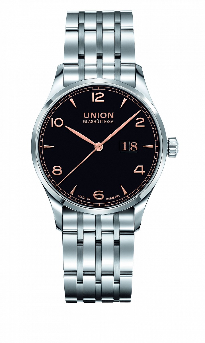 Union Glashütte Noramis Big Date jsou společenské hodinky se 40 mm pouzdrem z nerezové oceli. Černý číselník s velkou datumovkou a zlacenými aplikovanými indexy je kryt safírovým sklíčkem s oboustrannou antireflexní úpravou. Bezchybný chod je zajištěn automatickým strojkem U 2896 s rezervou chodu 42 hodin. Mechanické strojky ve všech hodinkách Union Glashütte jsou pečlivě zdobeny perláží a tzv. Glashütte pruhy, ručně skládány a regulovány. Tento proces zahrnuje nespočetné množství komplikovaných úkonů, které jsou prováděny ručně zkušenými hodináří v Glashütte. Stejně jako ostatní modely, je i tento osazen manufakturně vyráběným rotorem se skeletonizovaným logem Union. Krásu mechanického strojku je možné pozorovat safírovým průhledem v dýnku. Hodinky jsou vodotěsné do 3 ATM.