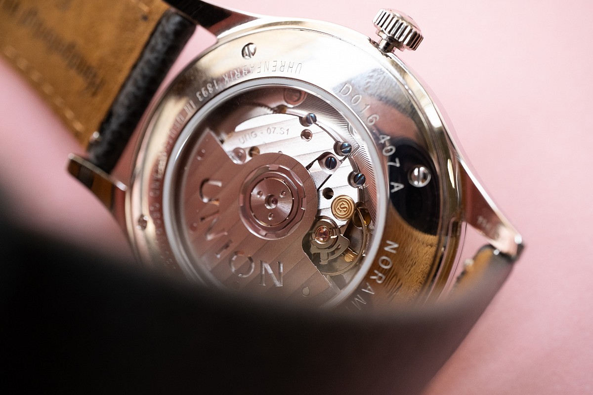 společenské hodinky se 40 mm pouzdrem z nerezové oceli. Grafitový enamelový číselník s aplikovanými indexy je kryt safírovým sklíčkem s oboustrannou antireflexní úpravou. Bezchybný chod je zajištěn automatickým strojkem UNG-07.S1 s rezervou chodu 60 hodin.