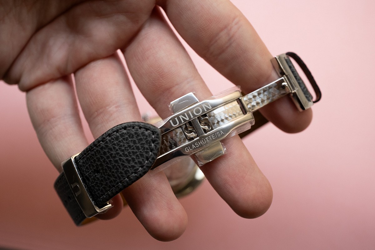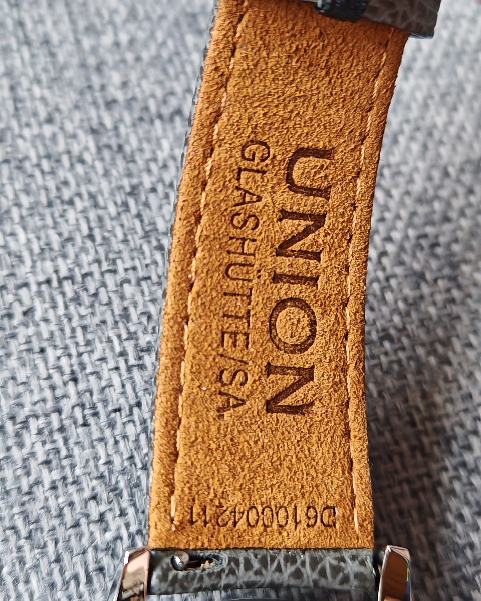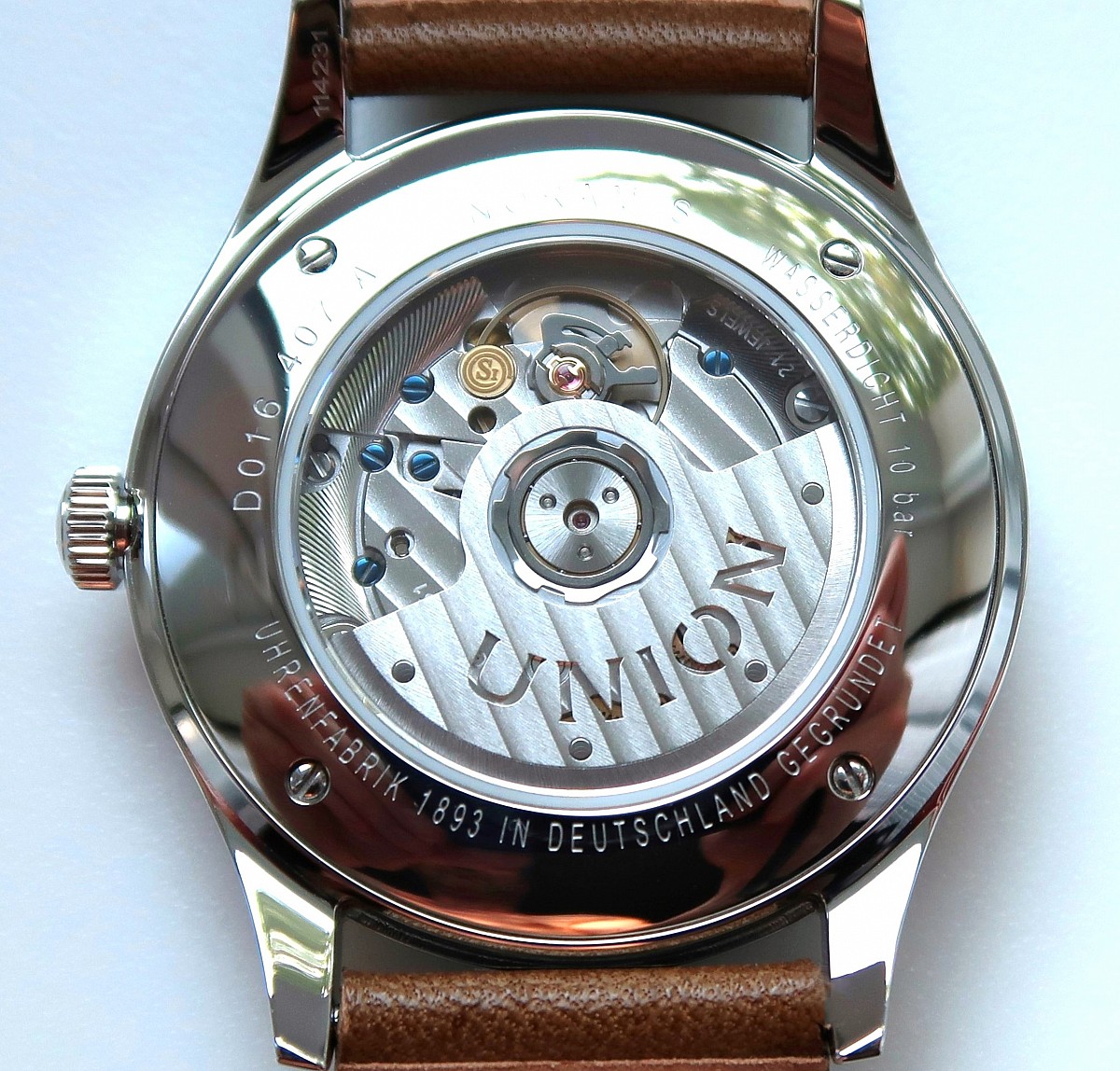 Mechanické strojky ve všech hodinkách Union Glashütte jsou pečlivě zdobeny perláží a tzv. Glashütte pruhy, ručně skládány a regulovány. Tento proces zahrnuje nespočetné množství komplikovaných úkonů, které jsou prováděny ručně zkušenými hodináří v Glashütte. Stejně jako ostatní modely, je i tento osazen manufakturně vyráběným rotorem se skeletonizovaným logem Union. Krásu mechanického strojku je možné pozorovat safírovým průhledem v dýnku. Hodinky jsou vodotěsné do 10 ATM.